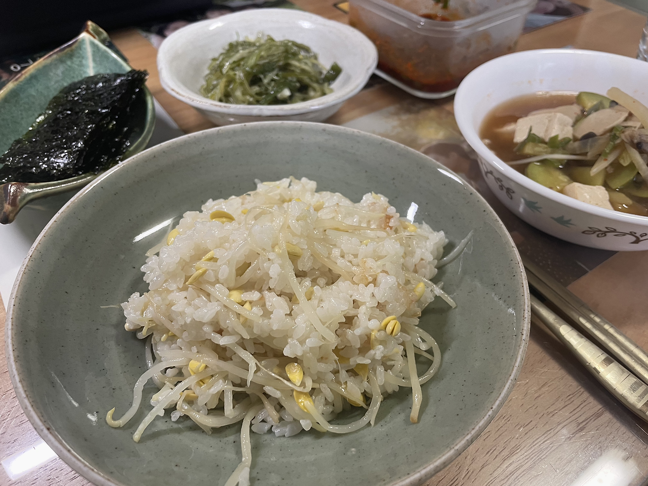 동네에 한 정거장 걸어가면 생협매장이 있다. 예전에는 유기농이나 친환경, 친농부 생협 재료가 일반 매장보다 조금 비쌌지만, 이제 물가가 많이 올라서 거의 비슷하거나 오히려 저렴하다. 산책 겸 걸어가서 매장 구경하는 데 소소한 낙이다. 유기농 콩나물 한 봉지를 사서 나물은 영 자신이 없고, 콩나물밥을 했다. 전기밥솥에 쌀을 안칠 때, 물을 평소보다 조금 넣고 콩나물을 씻어서 같이 앉히기만 하면 된다. 15분 쾌속이면 노란 콩나물 대가리의 달큰한 맛이 일품인 통나물밥이 완성된다. 우리 엄마가 자주 하는 음식 중 하나라서, 밥을 먹으면서 엄마 생각이 났다. 어떤 음식이든 별 조리 없이도 조리 시간을 기가 막히게 맞춰서 딱 입에 맛있고 깔끔한 엄마밥. 엄마밥이라는 말이 정치적으로 올바르지 않거나 혹은 고된 노동의 결과라고 해도 나의 자양분이었음은 틀림없는 사실이다. 그걸 먹고 자랐으니까. 어느 순간 엄마의 자양분보다 외부의 정보, 지식, 관계에서 더 성장한다는 걸 알아차렸을 때도 나에게 더 가까이 공감해 주지 못한다는 이유로 엄마를 답답해했었는데, 오늘 생각해 보니 참 이기적이었다. 이제는 집밥, 엄마밥 찾을 나이는 지났는데도, 본가에 가서 밥을 먹으면 배가 볼록하니 과식을 해서 어리석다는 말을 듣는 데도 말이다.
