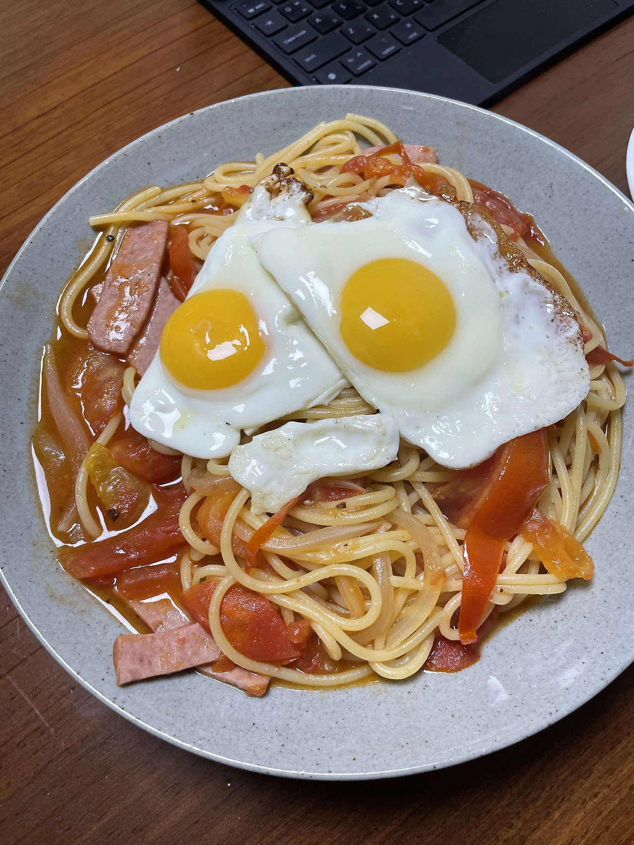 생토마토로 만든 나폴리 파스타는 여름에 어울리는 음식이다. 그래도 가끔 생각날 때는 하우스 토마토로도 만들어 먹는다. 햄을 네모 길쭉하게 잘라서 기름기 없이 가볍게 굽다가 토마토를 잘라서 볶고, 토마토 속이 살짝 흩어지려고 하면 면수를 넣는다. 면수를 넣고, 면수가 졸아들 때까지 볶다가 한번 더 면수를 넣고 약간의 소금과 액젓으로 간을 맞춘다. 면을 넣고 조금 더 볶아주다가 맨 마지막에 불을 끄고 후추로 마무리한다. 타이밍 맞게 만들어 놓은 써니 사이드업 계란 프라이를 올리면 완성. 단순하지만 풍부한 맛은 큰 위로가 되는 한 끼다. 탄수화물 가득한 면을 입안에 가득 넣고 우그작 우그작 씹으면 토마토의 신맛, 햄의 감칠맛, 계란의 고소한 단맛이 어우러진다. 한 그릇 요리가 주는 충만한 저녁이었다. 하지만 이 요리가 빛나는 건 여름, 내 친구의 무인농장 완숙 토마토를 넣어야 진정 원하던 맛이 난다. 그 즐거움으로 여름을 기다려야겠다.