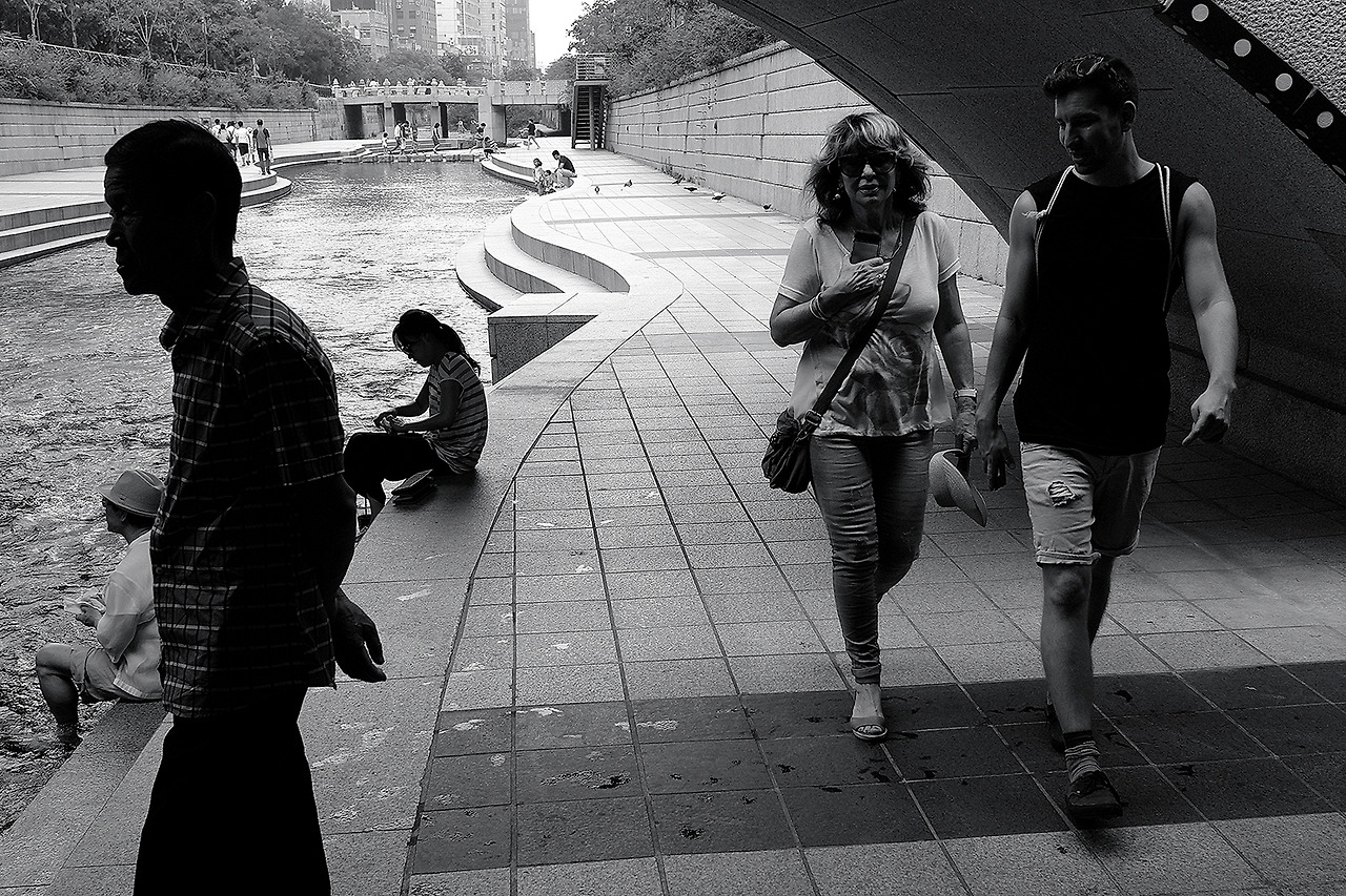 마침 라이카를 써볼 기회가 생겼습니다. 친한 형이 가진 라이카 X(typ 113) 기종이었는데요. 환산 화각 35mm는 스냅사진을 좋아하는 제게 적격이었습니다. 주어진 시간은 2주, 바로 청계천으로 떠납니다. 사야 될 책이 있어서 광화문에 가야 했고 청계천은 광화문 근처에서 쉽게 생각할 수 있는 촬영 포인트니까요. 도착해보니 서울 여행을 온 외국인들이 많더군요. 모델도 정해졌습니다. 이제 생각해야 할 건 '어떻게' 찍느냐입니다.