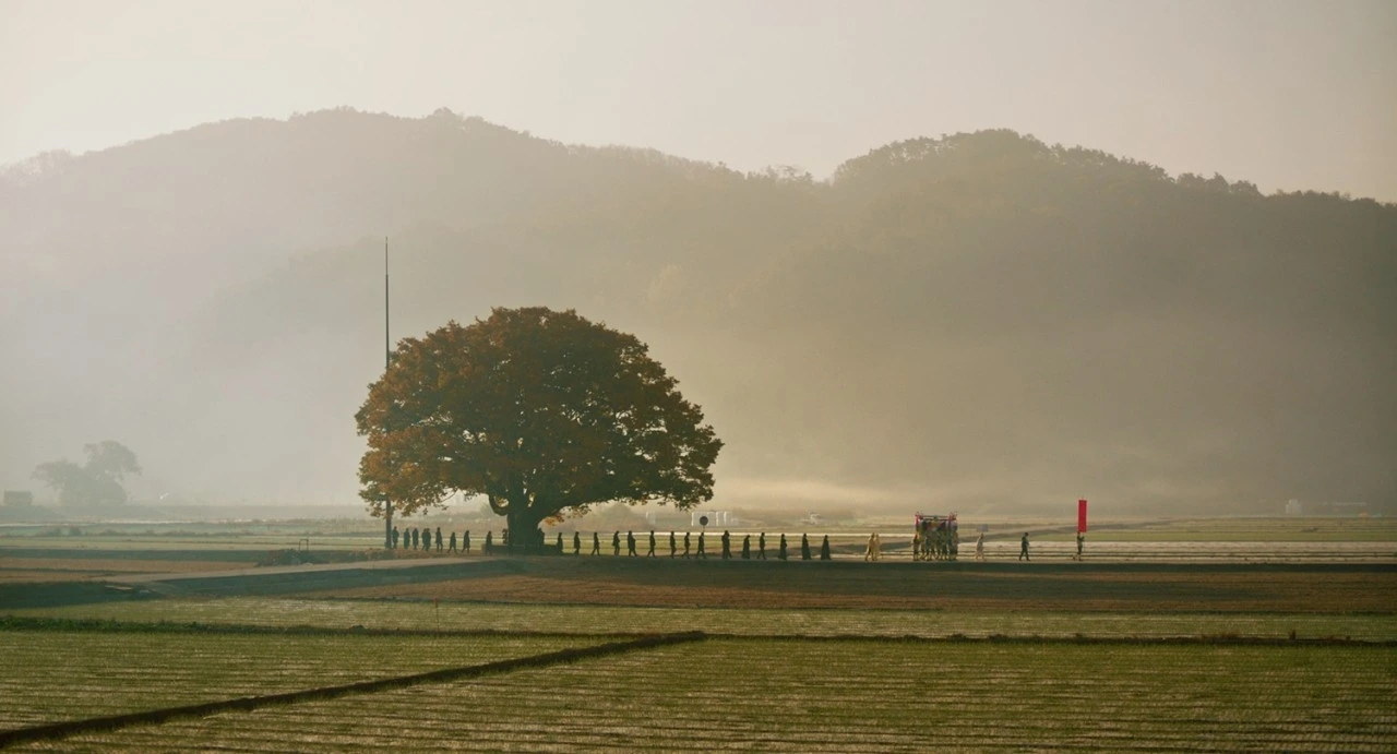 이렇게 요즘 세대의 관점에서 지난 세대의 전통을 지적하는 도식적인 구조에서 벗어나, 화자 역시 그 영향을 피할 수 없는 이로서 비판을 넘어서 자기반성적인 성찰을 시도하는 영화는 기대 이상으로 깊고 진합니다. 가까이서 보면 웃음이 나올 수가 없는 가족사가 먼 거리에서 '웃지 못할' 희극으로 그려지는 한편, 그런 가족사를 너르게 감싸안는 여름-가을-겨울 세 계절의 풍경은 고즈넉하면서도 동시에 무상함마저 느끼게 할 만큼 압도적입니다. 한 해도 채 되지 않는 시간동안의 계절의 흐름보다도 인간의 역사란 자그마한데, 그 안에서 어떤 빛을 얼마나 그러모으기 위해 얼마나 짙고 넓은 그림자를 만들어냈는가 곱씹어 보게 됩니다. 영화 속에 등장하는 대사와 같이 나무는 클수록 짙고 넓은 그림자를 드리우듯, 수 세대에 걸쳐 두텁게 쌓아올려진 가족의 전통이 만들어낸 그림자는 얼마나 짙고 넓을지를 생각하게 됩니다. 그렇게 현재의 혼란 뿐만 아니라 지나온 녹록지 않은 역사와 앞에 놓인 미래까지 들여다 보게 만드는 이 파란만장한 가족의 초상을 만들어내는 배우들의 앙상블 또한 대단합니다. 방관자를 자처하려 하지만 결코 그럴 수 없는 '당사자'인 장손의 굴레 아닌 굴레를 조용히 감내하는 성진을 묵직하게 보여주는 강승호 배우를 비롯해, 할아버지 승필 역의 우상전, 할머니 복녀 역의 손숙, 큰고모 혜숙 역의 차미경, 아버지 태근 역의 오만석, 어머니 수희 역의 안민영, 작은고모 옥자 역의 정재은, 작은고모부 동우 역의 서현철, 누나 미화 역의 김시은, 매형 재호 역의 강태우 배우까지 세대를 아우르는 배우들이 진정 가족과 같은 애증의 응어리를 진솔하게 그려내며 현실의 가족을 소환합니다.