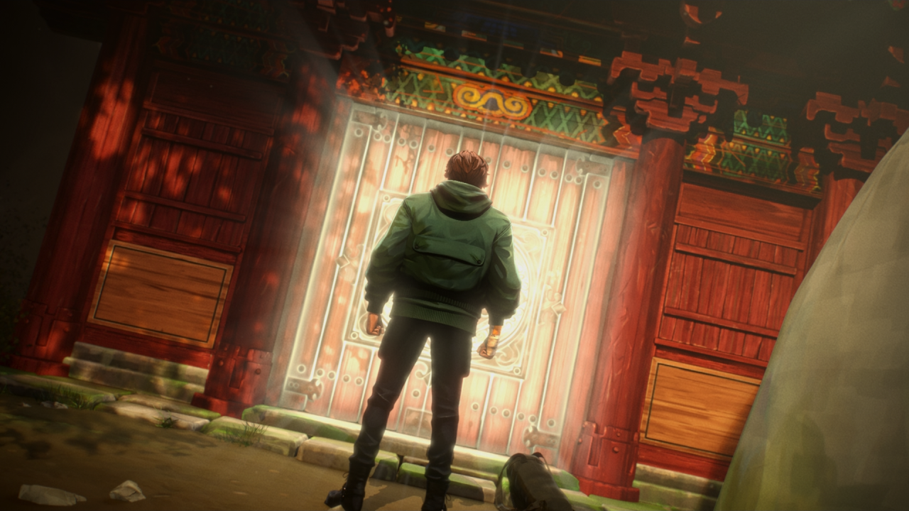 그러나 그럼에도 다른 요소들이 <퇴마록>의 이런 한계를 훌륭히 상쇄합니다. 먼저 섬세하고 개성 넘치는 작화와 역동적인 목소리 연기로 단단하게 구축된 캐릭터가 있습니다. <퇴마록>의 작화는 2D와 3D 사이 어딘가에 있는 질감을 보여주는데, 캐릭터의 형태와 이목구비, 배경의 세심함은 2D의 손맛을 느끼게 하는 한편 여기에 3D의 입체감을 더해 캐릭터에 활기를 한껏 불어넣습니다. '물리 구마'도 너끈히 가능할 것만 같은 피지컬을 지녔지만 과묵하고 따뜻한 품성을 지닌 박신부, 절박한 사연을 가슴 속에 숨기고 날렵한 액션 히어로의 모습을 보여주는 현암, 근엄하고 조신해 보이는 외양 너머로 부적술을 비롯한 갖은 도술을 선보이며 예측불가의 활약을 펼치는 준후 등 영화는 향후 이야기에서 활약할 주인공 캐릭터들의 시각적, 인간적 매력을 충실히 부여합니다. 역시 '퇴마록' 세계관을 이끌어가는 또 한명의 주역이지만 이번 이야기에서는 스토리라인상 특별출연급으로만 등장하는 승희(김연우)의 캐릭터 디자인 역시 존재감을 확실히 새길 만큼 개성과 매력을 갖추었습니다. 무엇보다 이 캐릭터들은 성우들의 목소리와 캐릭터의 입모양을 맞추는 정도가 할리우드 애니메이션에서나 볼 수 있을 수준으로 잘 작업되어 있어 캐릭터에 대한 몰입감을 높입니다. 캐릭터 디자인 뿐 아니라 배경 디자인 또한 때때로 넋놓고 스크린을 지켜보게 합니다. 초반 박신부가 누비는 시내의 모습은 영락없는 한국의 어느 골목 풍경을 꼼꼼하게 재현해 놓았고, 해동밀교로 향하는 여정은 한국에서만 볼 수 있을 듯 산과 물과 빛이 조화롭게 서로를 감싸는 자연 풍경이 광활하게 그려내며, 주인공들이 당도해 최후의 전투를 벌이는 해동밀교 경전의 외관과 내부 또한 한국적 풍미 안에 다양한 정체성을 끌어안은 해동밀교의 정체성을 시각적으로 훌륭히 표현합니다.