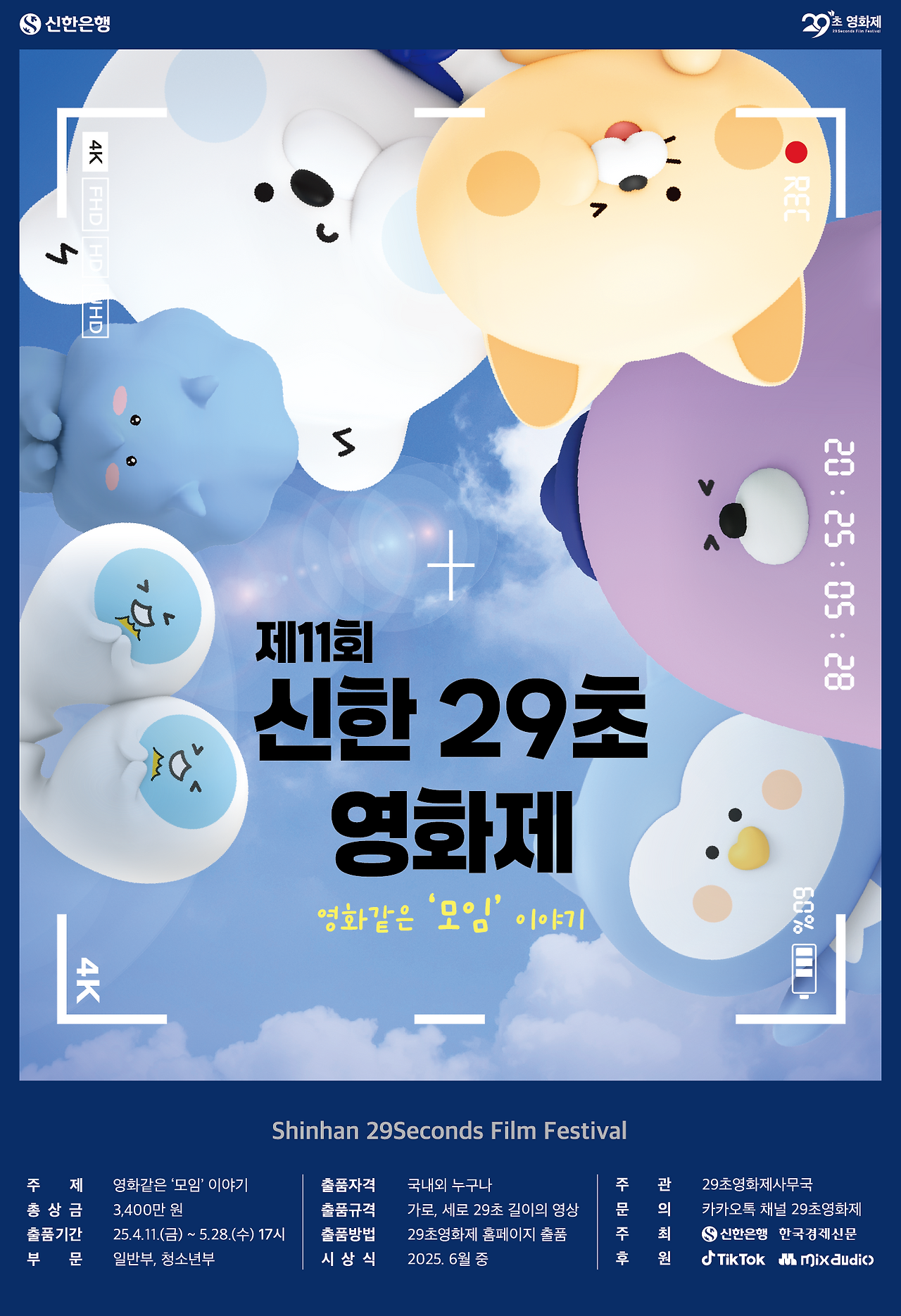 누구에게나 있을 모임의 기쁨이 담긴, 누구나 함께 할 수 있는 영화제. 제11회 신한 29초영화제에 많은 분들의 참여를 기대해 봅니다.
