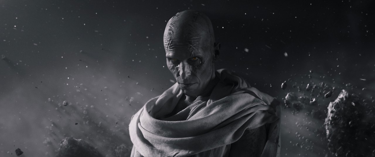 이토록 차고 넘치는 개그가 대부분 토르를 포함한 신적인 존재들에게 집중되어 있다는 점이 흥미롭습니다. 물론 제인을 비롯해 인간 캐릭터는 영화에서 소수에 머물지만, 인간들이 나올 때 영화는 웃기려 들지 않습니다. 덜어내도 그만이다 싶을 만큼 긴 분량으로 웃기려는 의지를 적극적으로 피력하는 장면들에 중심에는 대부분 신들이 있죠. 영화가 가장 진지하게 접근하는 건 메인 빌런인 고르가 탄생하기까지의 과정을 보여주는 부분이 아닐까 싶습니다. 고르의 서사를 통해 제시되는, '신은 마땅히 믿고 의지할 만한 존재인가'라는 담론이 어쩌면 영화의 핵심 주제일 것입니다. 이 생각보다 도발적인고 무거운 담론을 품고 영화를 보다 보면, 휘황찬란한 껍데기를 한 신들의 도시를 지켜 보면서 어쩌면 인간이 신보다 더 세상에 대해 진지할지도 모른다는 괴리감과 직면하게 될 것입니다. 이를 통해 영화는 우리 삶을 관통하는 가장 소중한 깨달음은 우리 머리 위의 초월적 존재가 아니라 우리와 눈을 맞추고 있는 현실의 존재들 사이에서 구할 수 있다는 메시지를 주려 한 것 같기도 합니다.