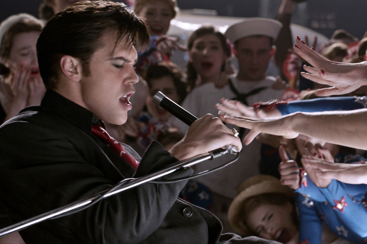 다리를 사시나무 떨듯이 떨고 골반을 튕기며 스스로도 가누기 힘든 리듬과 사운드를 쏟아내던 엘비스 프레슬리의 퍼포먼스는, 이를 접하는 청중의 만감이 교차하는 듯한 반응처럼 전에 없이 욕망에 충실한 형태의 대중 문화를 세상에 선보였습니다. 이는 어릴 적 리듬 앤 블루스 음악을 접할 때 느꼈던 전율을 있는 그대로 몸으로 표현해 내면서 생겨난 자연스러운 에너지였을 겁니다. 그러나 마틴 루터 킹 암살, 로버트 케네디 암살 등 당대의 미국은 고된 투쟁과 예기치 못한 좌절이 교차하는 엄혹한 시대 안에 있었고, 그 시대의 구성원으로서 엘비스는 책임감을 느끼고 적극적으로 세상을 향해 목소리를 내기를 희망했습니다. 그러나 톰 파커 대령으로 대표되는 당대의 엔터테인먼트 산업은 전에 없이 극적인 부의 축적에 정신이 팔려 있었고, 그 성공의 광풍은 아티스트가 느꼈을 사회적 책임감마저 지우며 그를 얄팍한 '딴따라'에 머물게 하려 갖은 수를 썼습니다. 이런 산업의 생리로 인해 우리는 엘비스 프레슬리를 화려한 엔터테이너로만 기억해 온 것일지도 모릅니다. 영화는 개인의 꿈에서 피어난 꽃을 통제할 수 없는 야망의 소용돌이로 몰아넣는 쇼비즈니스의 이면을 그림으로써, 어렴풋한 전설 속 뮤지션의 이미지로 남아 있던 엘비스 프레슬리에 새삼 사람다운 호흡을 불어넣습니다. 스포트라이트가 화려해질수록 꺼진 뒤 시야에 남는 잔상이 더 또렷해지듯, 엘비스 프레슬리가 성공의 정점으로 향해 갈수록 그가 품은 마음과 그가 마주하는 세상의 괴리가 더 커져감을 느끼며 관객 또한 비애감을 느끼게 됩니다.