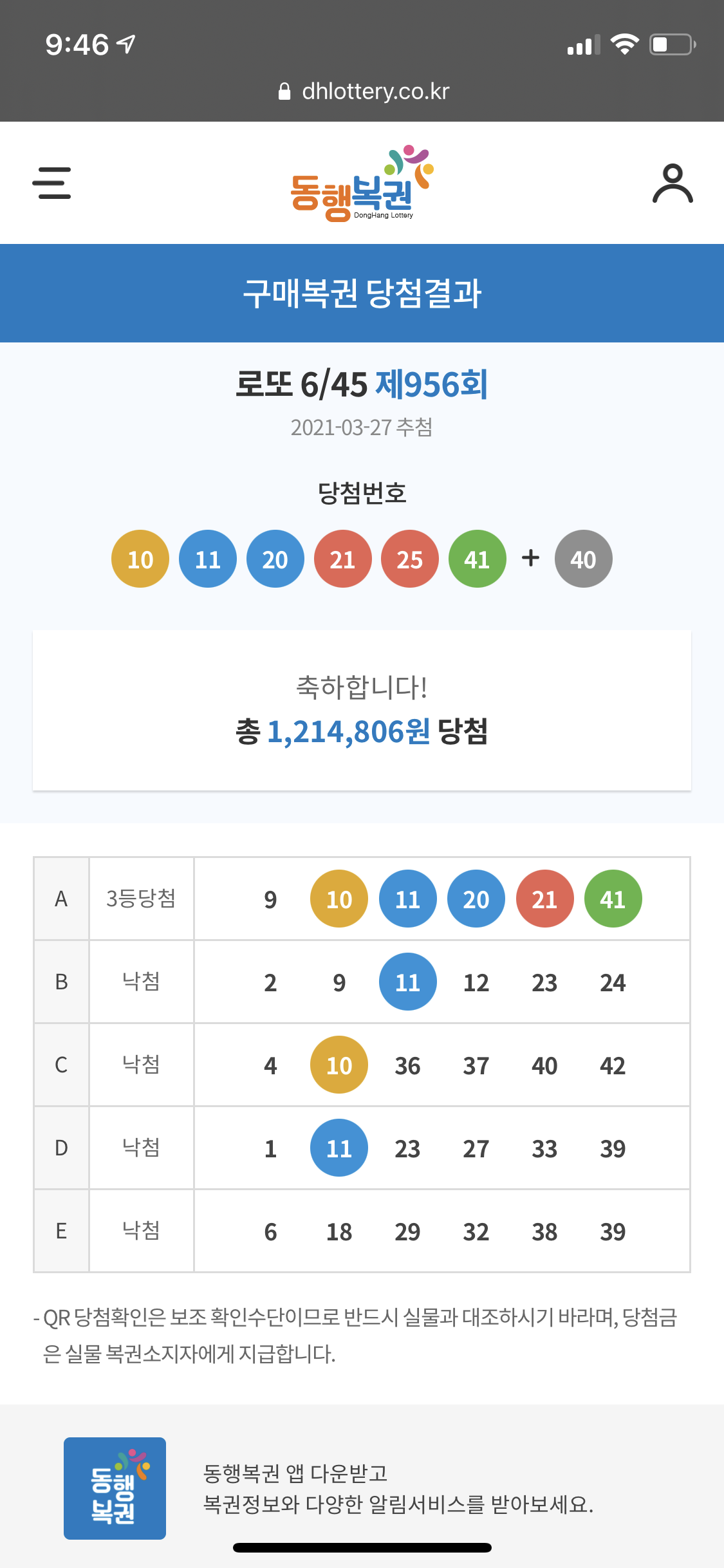 지갑에서 로또 종이를 꺼내서 폰카로 QR을 찍었다.