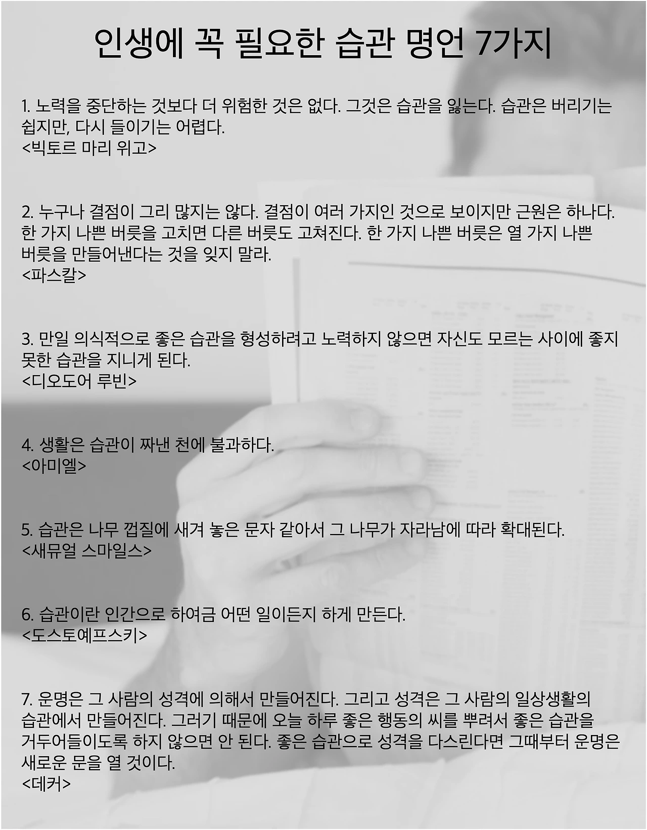 저에게 와닿았던 습관 명언을 소개드립니다.