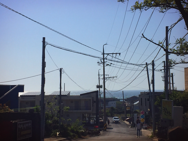 애월 해변을 돌아나오며, 참 설레는 풍경을 보았다. 저 멀리 바다가 보이는 골목길. 바다로 향하는 길. 방금 떠나온 곳이지만 다시 뛰어가고 싶은 길.