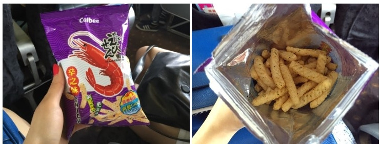 어젯밤 마트에서 샀던 매운 새우깡, 홍콩에 왔으니까 홍콩 과자를 먹어보고 싶었는데 마트에 있던 대부분의 과자가 Calbee 이거나 Lotte 였다. 그냥 국내 새우깡이랑 비교나 해보자 싶어 샀는데 역시 한국 사람은 한국 과자를 먹어야겠다. 생전 처음 먹어보는 오묘한 맛이 났다. 몇개 먹다가 맛이 없다고 가방에 넣어뒀는데 돌아오는 페리에서 배고프다며 다시 꺼내먹었다.
