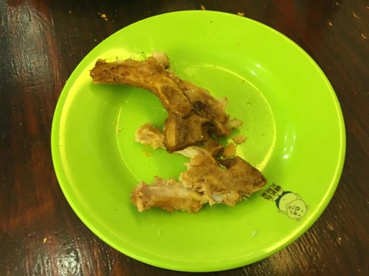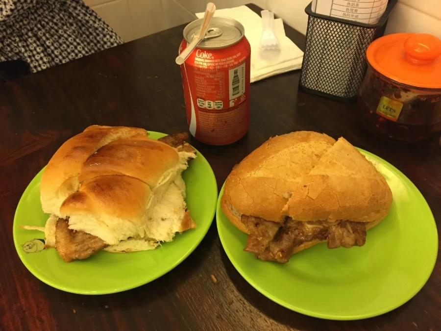 빵 사이에 돼지고기 끝. 야채 한 조각, 소스 한 방울 들어있지 않은데 신기하게 맛있다. 한국에서도 팔았으면 좋겠는 맛. 양념이 잘 베어있는 고기가 맛있었다. 그런데 한입 베어무는 순간, 뭔가 묵직하고 딱딱하게 느껴진다. 빵을 들춰보니 엄청난 크기의 뼈가 들어 있었다. 이거 고기만 있는 줄 알고 세게 씹었더라면 이가 나갔을 거라며 킥킥대다가 뼈다귀 사진을 남겼다.
