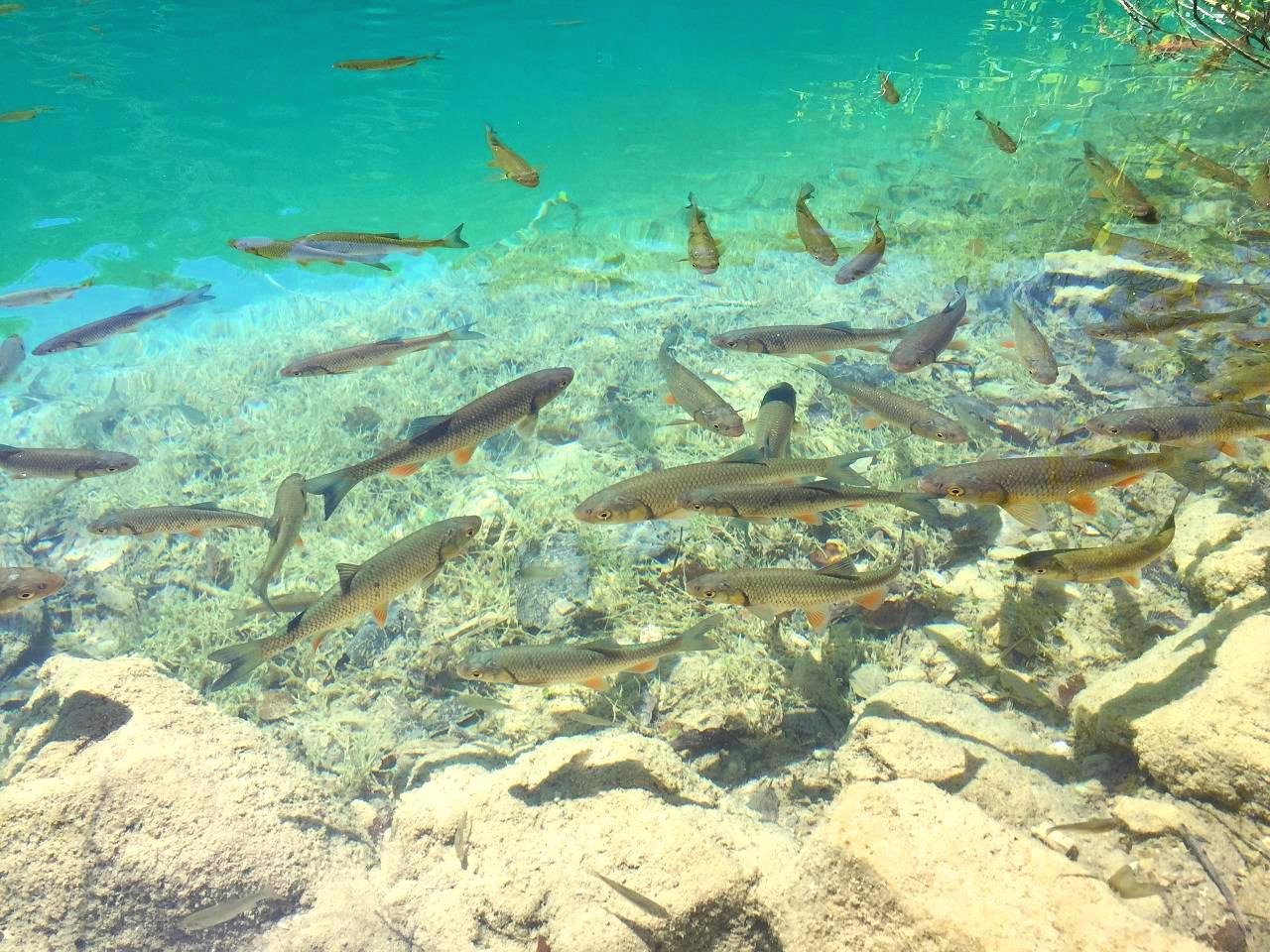 푸르다 못해 정말 새파란 물 속에 물 고기들이 떼를 지어 다닌다. 오며가며 만난 한국 분들이 '어디에 쓰려고 이렇게 물고기 사진을 찍는지 모르겠다'고 입을 모아 말한다. 나도 모르게 수도 없이 셔터를 누르게 되는 곳, 플리트비체였다.