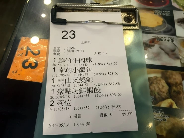 홍콩 식당에서는 모두 물값을 받는다. 영수증 제일 하단에 차(茶)라고 표기된 것이 따뜻하게 제공된 물이다. 인당 3달러, 가격은 500원 정도로 저렴하지만, 음식을 사 먹으면서도 물값을 내야한다니 한국인 정서로는 영 불편하다. 더군다나 차를 마시겠냐고 묻지도 않고 자리에 앉자마자 차부터 내준다. 모르고 계속 마셨다가는 음식 값보다 물값이 더 나올수도 있는 상황. 홍콩에서는 당연한 문화이겠지만, 관광객으로서는 여간 불편한게 아니다. 영어가 잘 통하지 않는 매장이 많아서 매번 마실 때 마다 물값이 얼마냐, 한 잔 더마시는건 프리냐 추가금액을 내야하냐 물어보기도 어렵고.. 물을 안 마실 수는 없으니 우리는 어딜가나 딱 한 잔씩 최소한의 물만 마시기로 했다.
