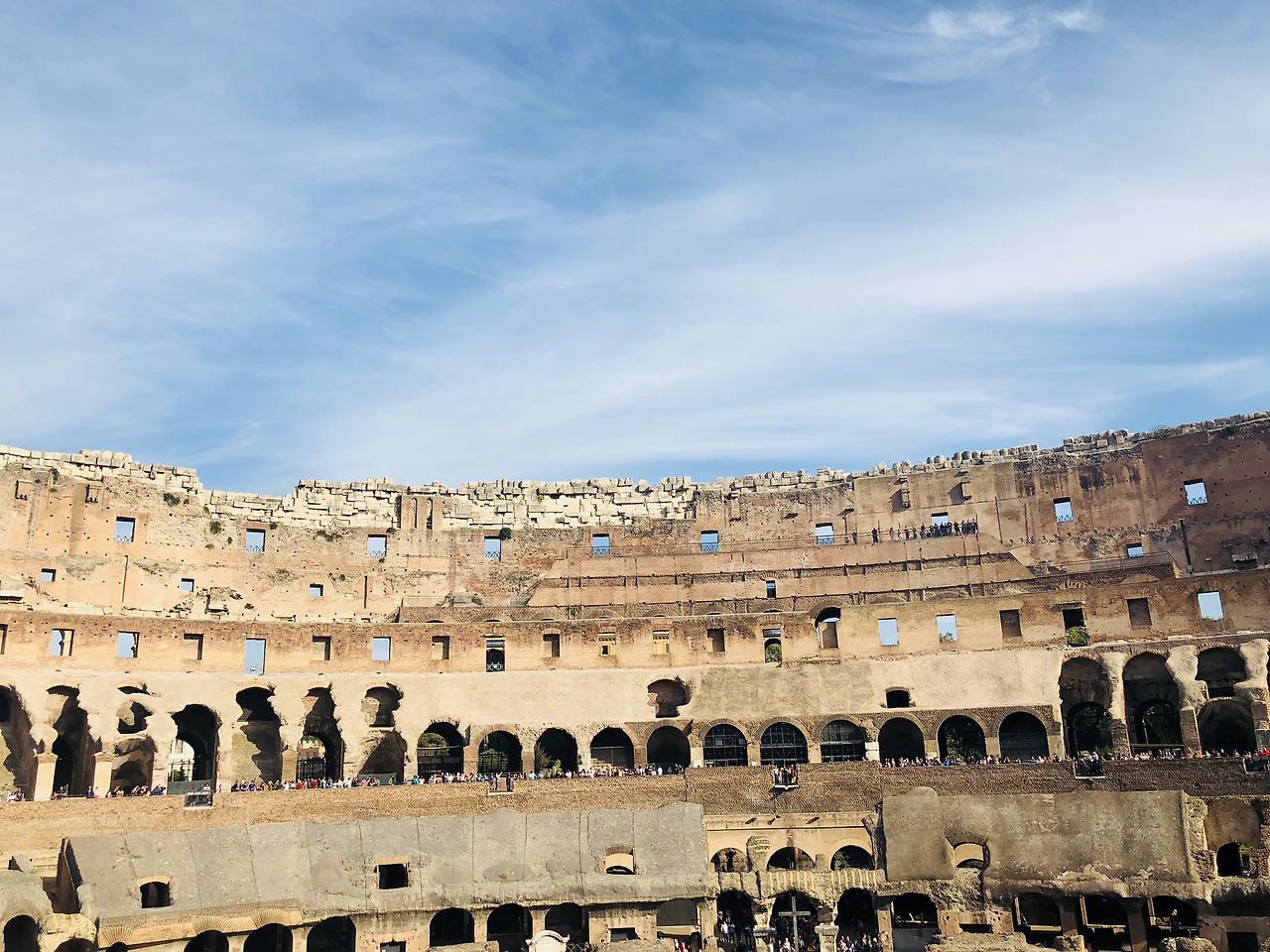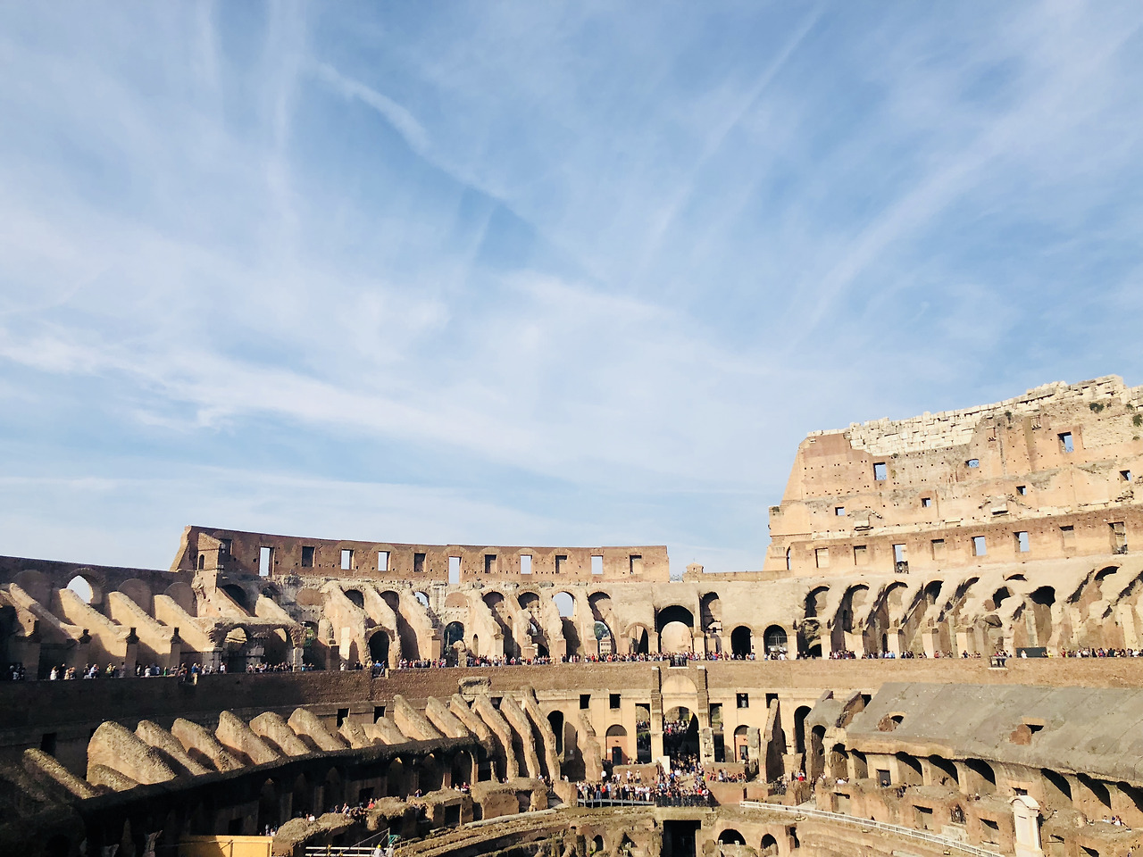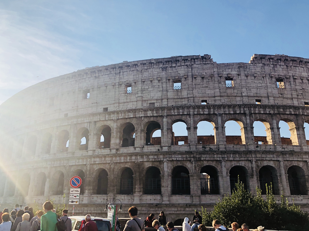 어쨌든 택시기사님의 도움(?)을 받아 콜로세움에 도착했다. 와보고 느낀건, 우리는 유적지에 관심이 없는 편이 아니라 아예 관심이 없는거였구나. 아침 이른 시간으로 예약을 하고 방문했음에도, 사람 반 콜로세움 반이다. 콜로세움에서 전세계 사람을 다 만난 것 같다. 노란 손수건을 매고 수학여행을 온 듯한 꼬맹이들 뒤를 따라 다니다가 그대로 퇴장했다. 이럴 때 J와 마음이 잘 맞아서 다행이다.