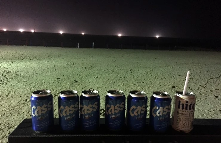운전을 하는 U가 한 사람이라도 더 즐거워야 한다며 맥주를 허락해줘서 시원한 맥주를 한 캔 샀다. 빨대로 쪽쪽 마시다가 성에 안차 벌컥벌컥 마시고는 방금 전 다녀갔을 누군가들이 쪼로록 세워놓은 맥주 캔 옆에 일행인양 올려놔본다.