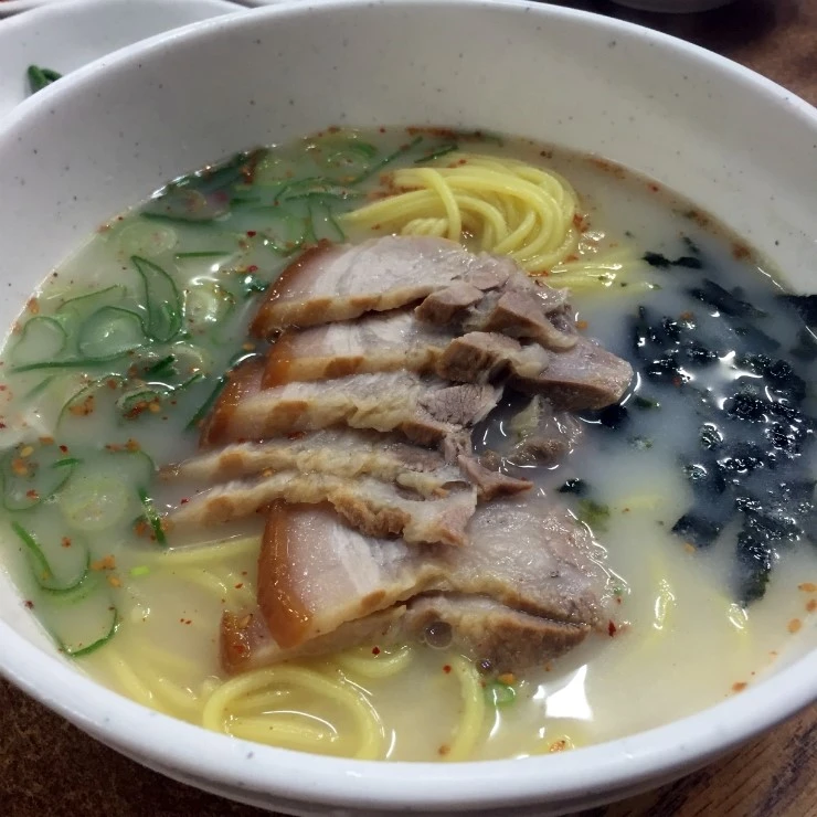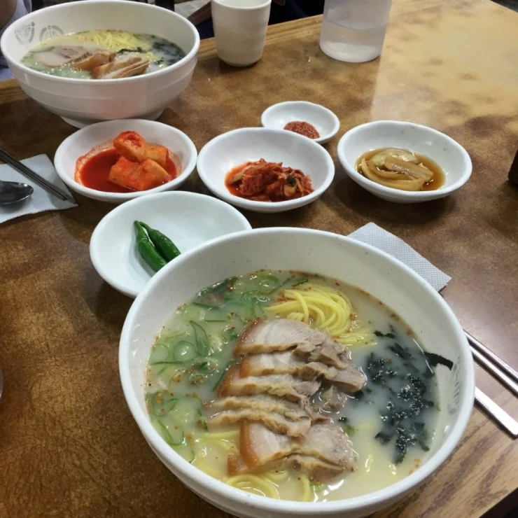 고기국수를 좋아한다. 나는 대게 몸이 안 좋을 때 뽀얗고 진한 국물이 있는 음식을 찾는데, 돼지국밥, 순대국, 고기국수가 대표적이다. 내가 생각하는 가장 맛있으면서 동시에 건강한 음식! 제주에 오면 매일같이 먹고 싶고, 서울에 가서도 제주에 다시 오고 싶게 만드는 궁극의 음식! 그 음식이 내 눈 앞에 있다. 정말 순식간에 흡입했다. '아 진짜 맛있다.'