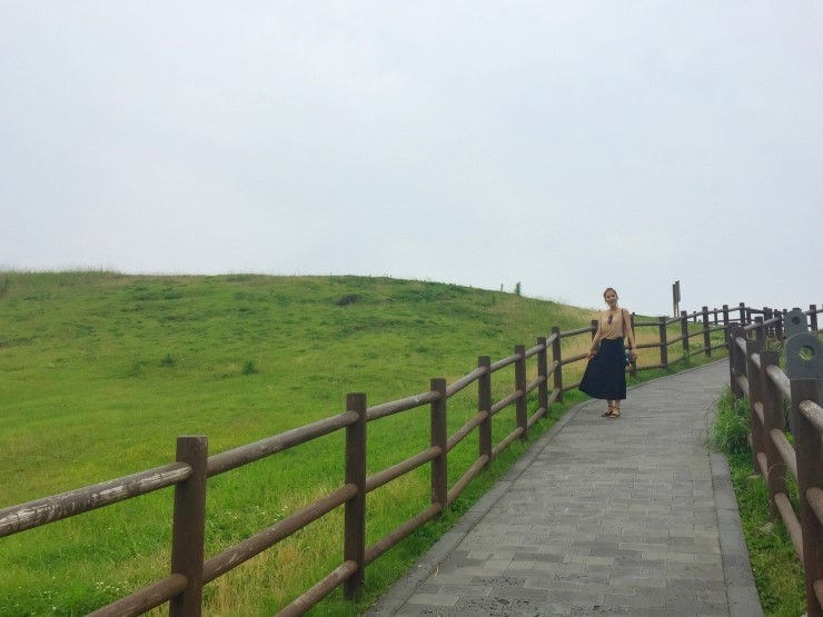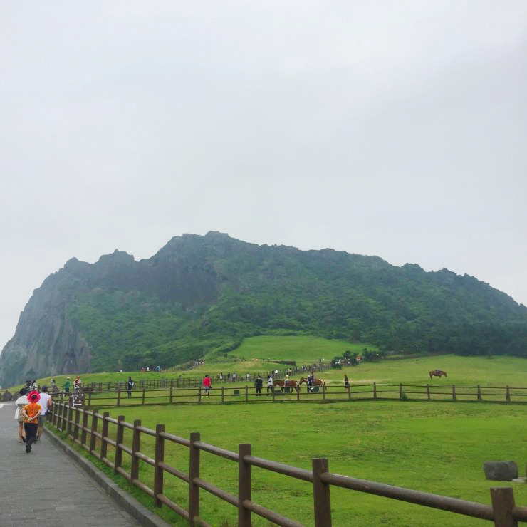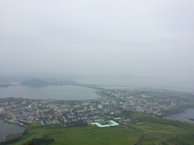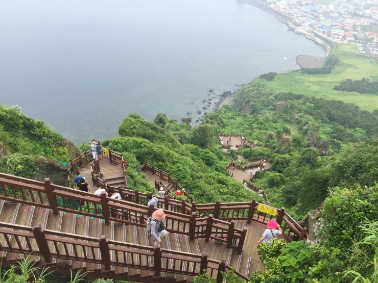 일출봉을 오를 때 입구에서부터 같이 출발한 사람들과 은근한 경쟁을 하게 된다. 특히나 나보다 연세가 있는 분들이 앞서 나갈 때면 허벅지에 불이나게 쫓아 올라갔다. 주위 풍경도 내려다보며 여유롭게 올라갈 법도 한데 다들 정상만 보며 기를쓰고 올라간다. 종아리에 알이 생기도록 용을 쓴 덕분인지 일출봉 정상은 생각보다 가까웠다. 날이 흐려 아쉽게도 멀리까지 내다 볼 수는 없었다.