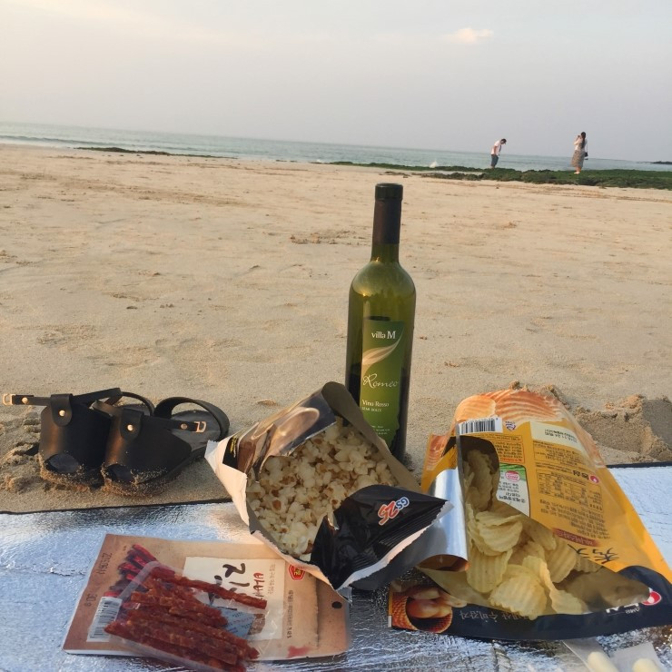 무계획으로 여행을 온 우리는 보통 자기 전에 내일 아침에 뭐 할까?를 고민했고, 점심을 먹으며 오후에 뭐 할까?를 의논했다. 그리고 마음이 내키는대로 다녔다. 고기를 먹으며 오후에 뭐 할까?를 고민하던 중 고기를 구워주시던 분이 뭐 어디 갈거 있냐며 월정리 해변에 가서 술이나 마시란다. 콜! 완전 땡긴다!!