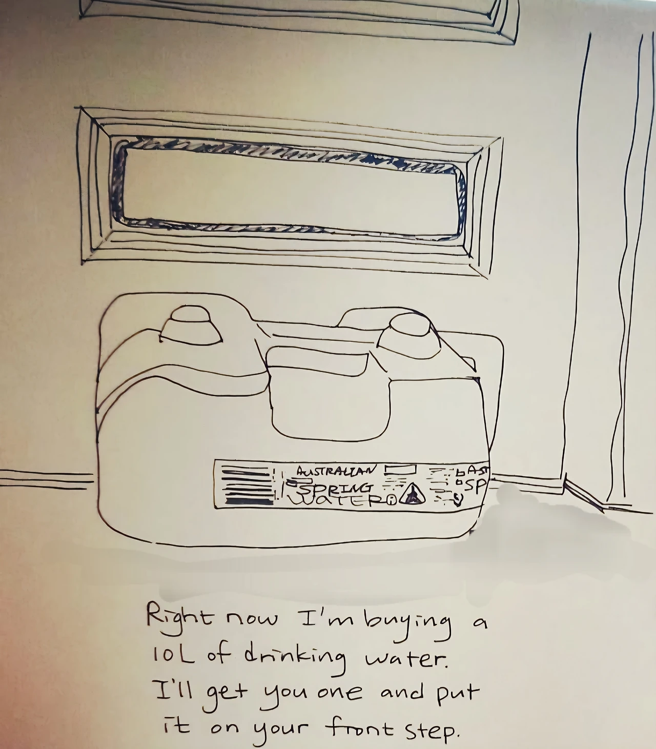 알고 보니 우리 동네 수도관이 터졌다는 소식을 듣고, 멜라니는 이른 아침에 물을 사러 갔나보다.