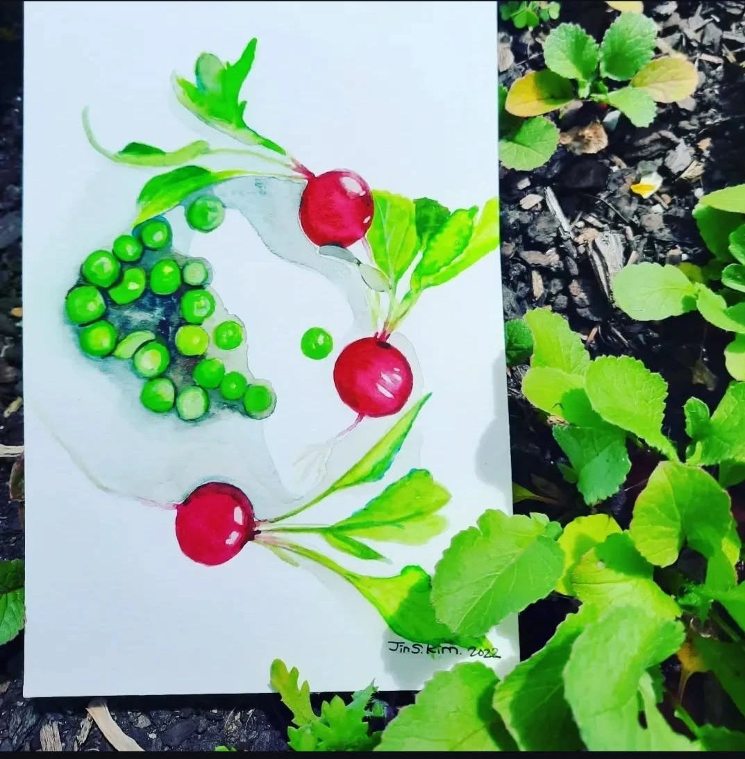 텃밭에서 막 수확한 레디쉬 몇 개와 통통하게 영근 강낭콩을 한 움큼 손에 들고 들어왔다.