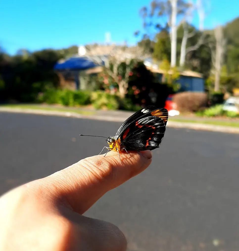 더 신기한 건, 가까이 다가가도 날아가지도 않고 가만히 있길래 신기해서 나도 모르게 손가락을 내밀었다. 그런데 기다렸다는 듯이 손가락으로 천천히 올라오는 게 아닌가! 그리고 한참을 앉아있다.
