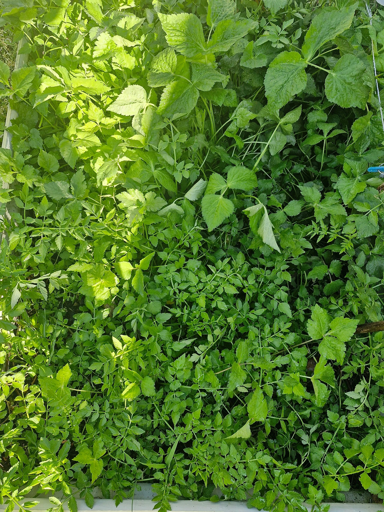 미나리는 엄청 번지는 식물이라 겨울 동안 가든베드 하나를 미나리에게 제공했더니 금세 이렇게 풍성해졌다.
