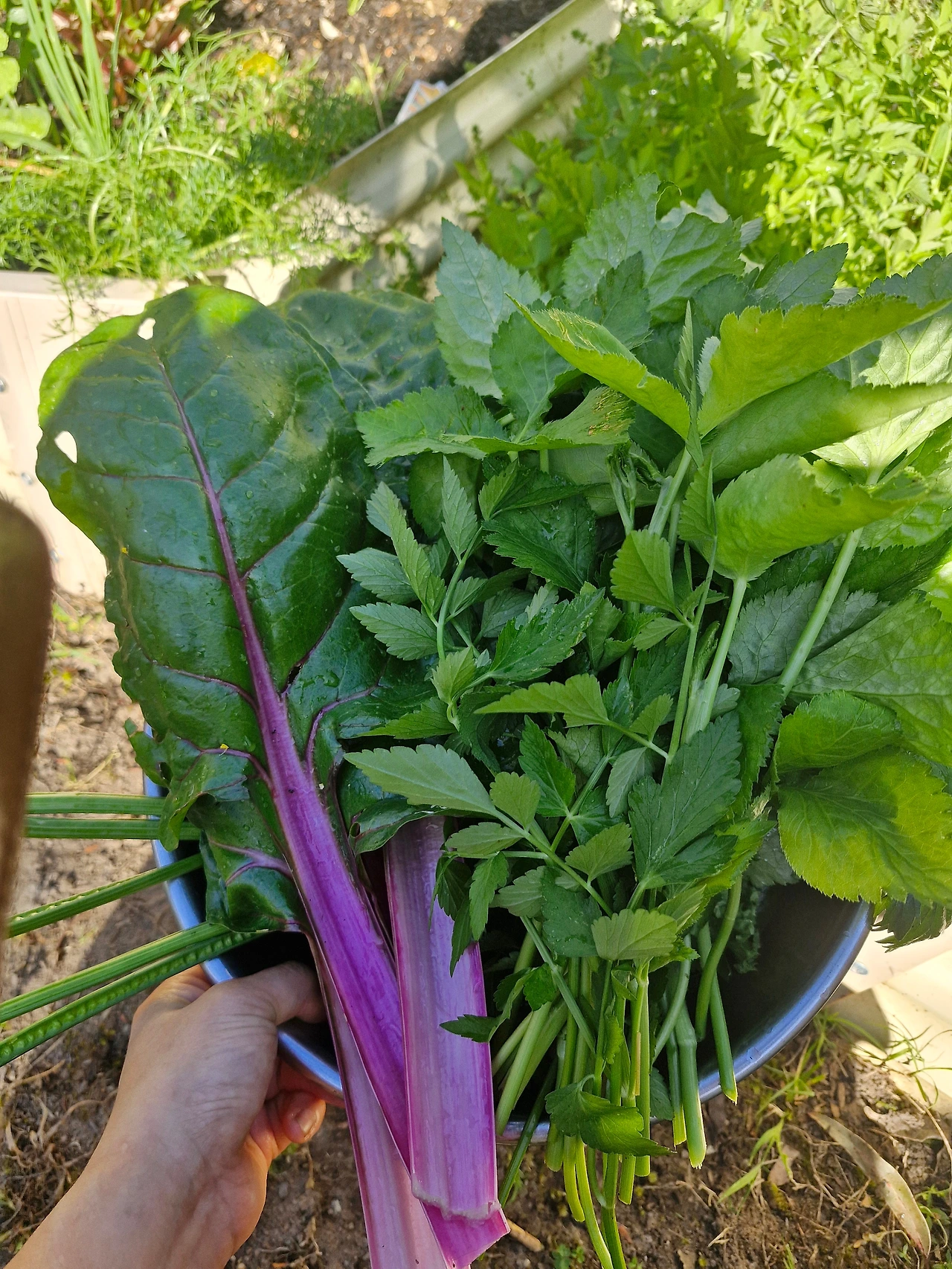오늘도 감사한 마음으로 텃밭야채들을 수확했다. 실버비트는 에그와 함께 스크램블로 만들어서 아침식탁에 올렸다.