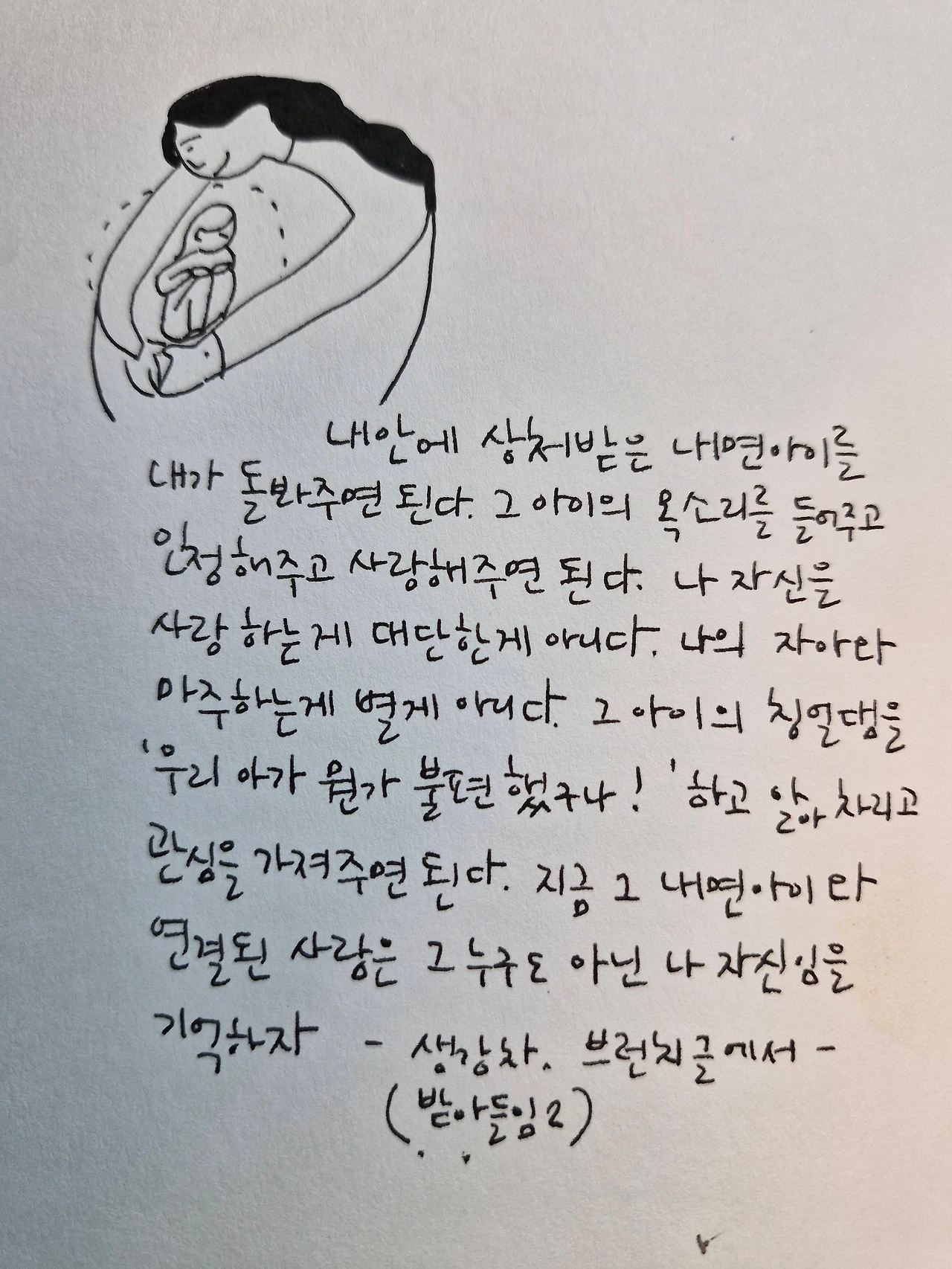 내 안에 있는 지치고 힘든 내면아이를 알아채주고, 안아주고, 격려하는 방법으로 이만한 게 없는 것 같아요.