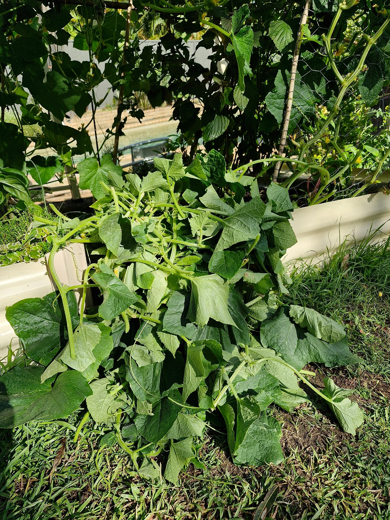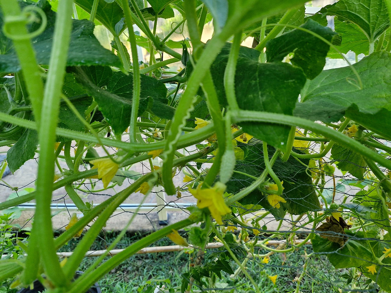 한국산 백다다기 오이를 키워먹겠다고 호기롭게 씨를 심고 싹이 잘 틔운 모종을 여섯 개나 심었다. 꽃이 백송이도 넘게 피고 잎도 무성해서 풍작을 기대했다. 여름 내내 물 주고 정성스레 가꿨다.