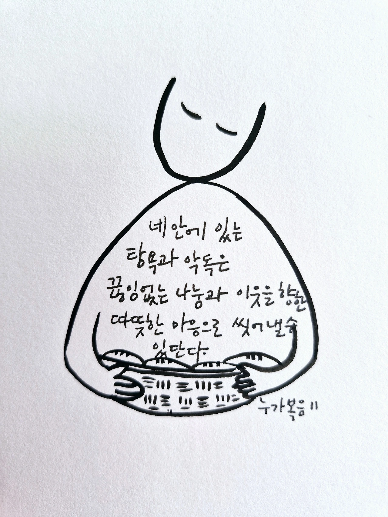 자, 오늘은 뭘 나눠볼까나? 가 저의 습관이 되면 좋겠어요. 나를 구하고 이웃을 돌보는 이 복된 질문을 부디 잊지 않기를 기도합니다.