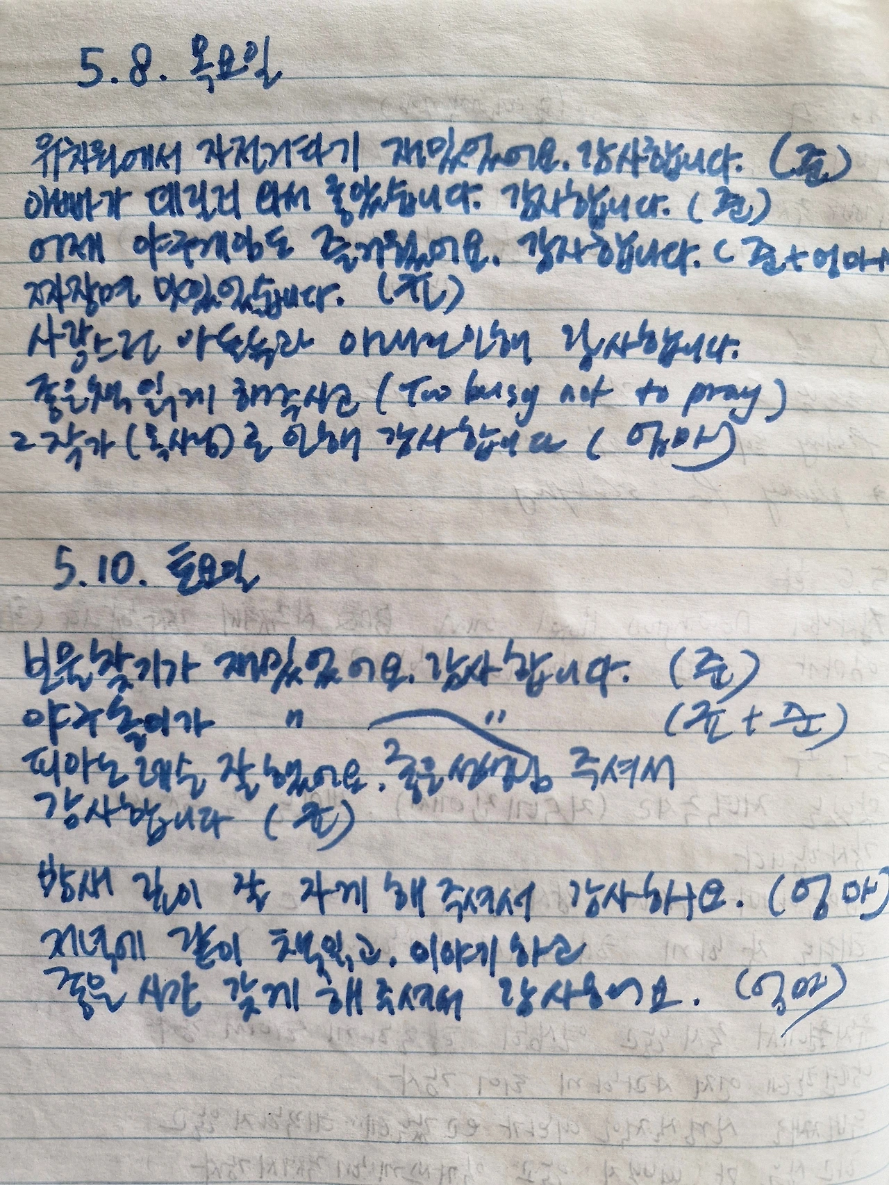 이렇게 두어 달 하다가 노트가 끝이 났어요. 그러다 개인 일기장에 감사를 세줄적기도 하다 말다가를 반복하고, 또 바쁘게 사느라 한참~ 잊어버리고 살다가, 아! 하고 어느 날 생각나면, 또 시작하고... 그렇게 저의 감사노트는 가늘고 길게 명맥을 유지하며 지금껏 왔네요.