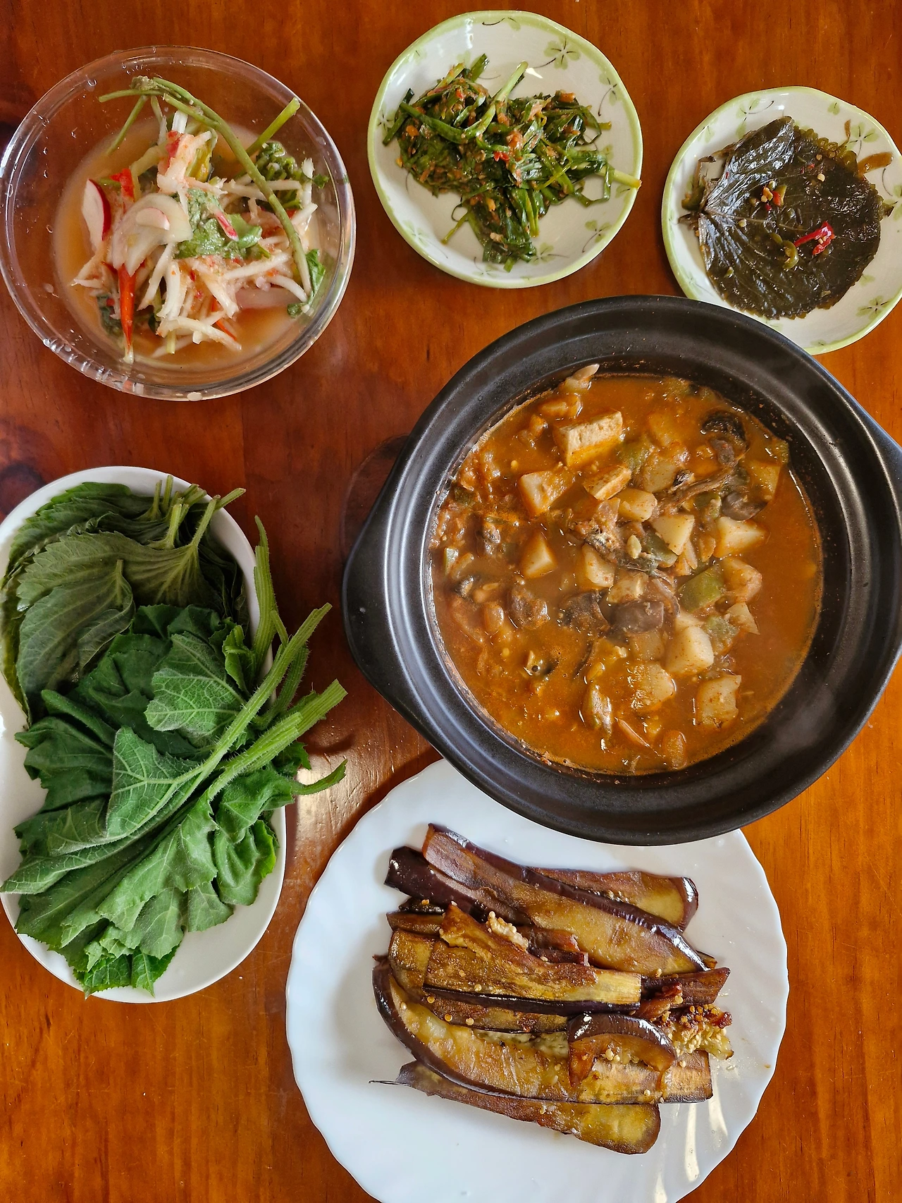 늘 이렇게 먹지는 않지만, 한 번씩 차리는 한식 밥상. 우와~ 가지 빼고는 다 키운 거다!!!! 보기만 해도 뿌듯하다. 키운 사람만 아는 이 기분.