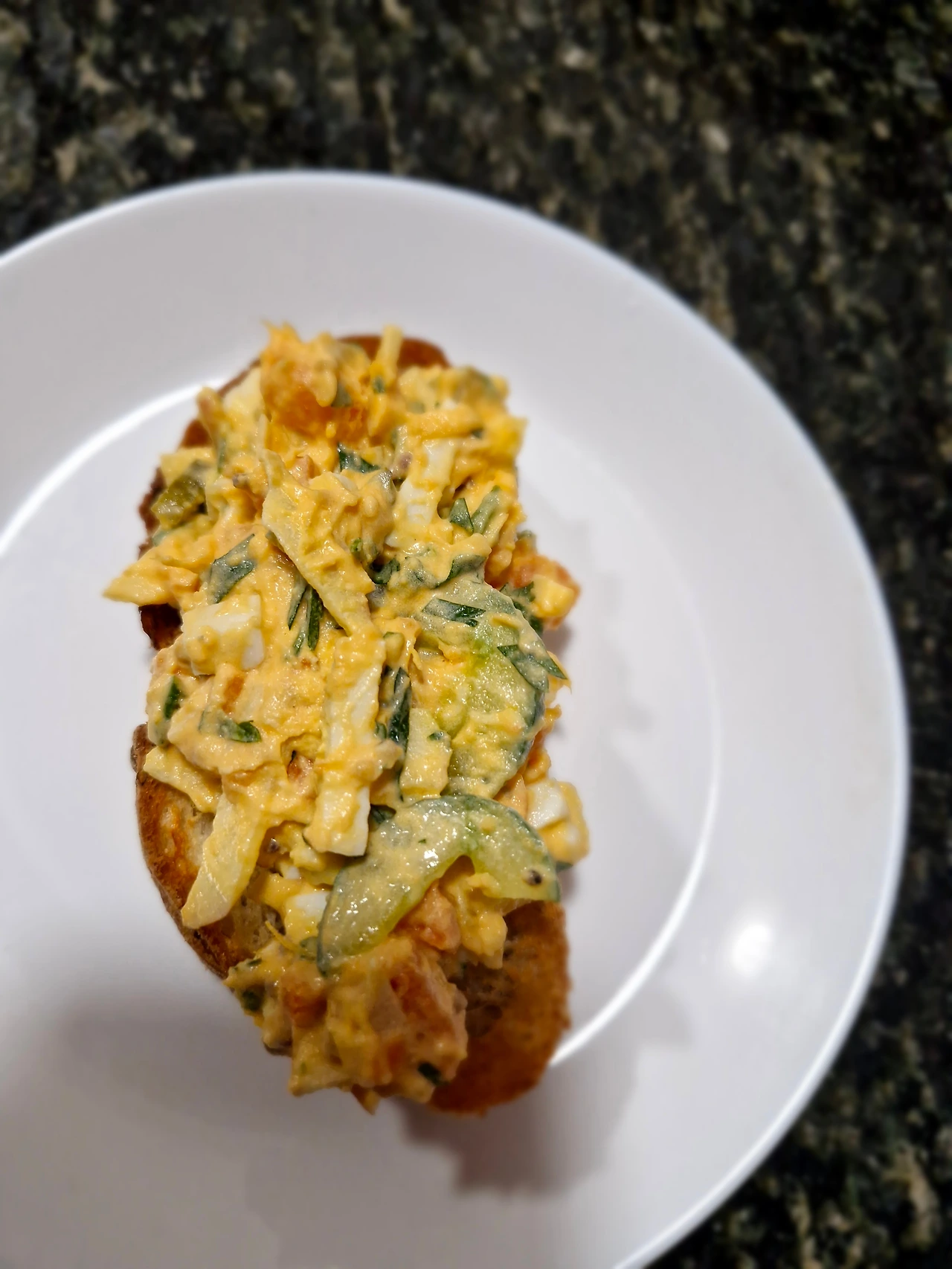 저는 아침으로 사워도우빵 토스트해서 샐러드 올려서 먹었어요. 피클을 다져 넣어서 그런지 그냥 샐러드만 먹기보단 빵과 함께 먹어야 맛이 잘 어우러지더라고요.