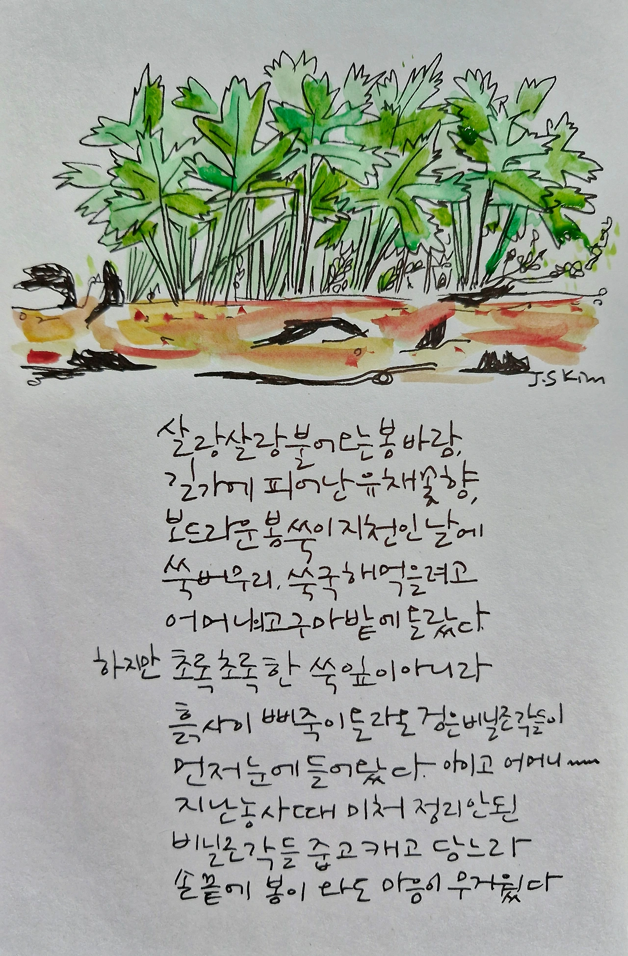한국에 나갈 때마다 대부분의 농가에서 잡초 방지나 토양 보온, 수분 유지를 위해 플라스틱 비닐을 널리 사용하고 있는 게 보인다. 그러나 이 편리한 도구가 밭에 묻히거나 잘 회수되지 않을 경우, 심각한 환경문제를 초래하게 된다는 것을 다들 심각하게 생각하지 않는 것 같아 너무 안타깝다.