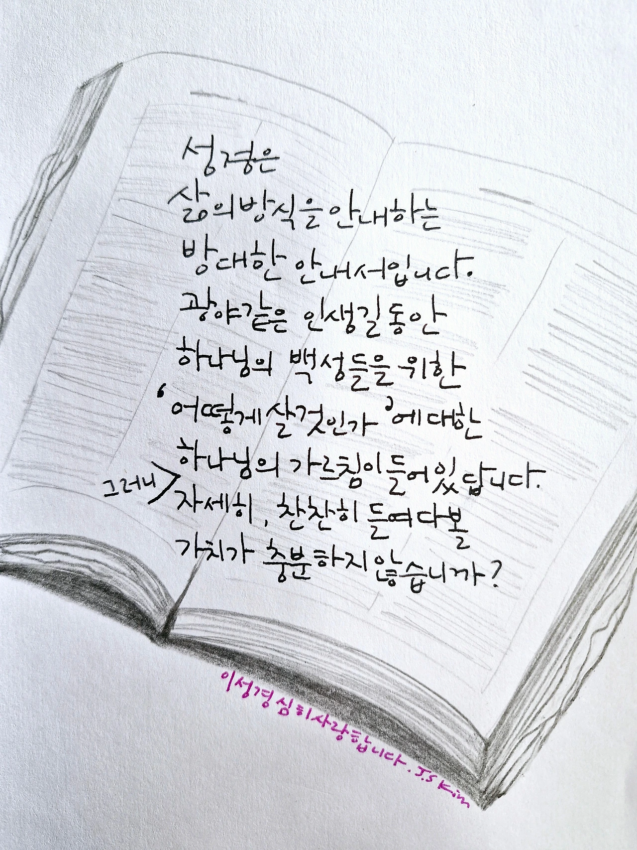천천히, 그러나 분명하게 말씀이 내 삶에 스며들었고 나의 삶을 다듬고 있음을 느낀다.