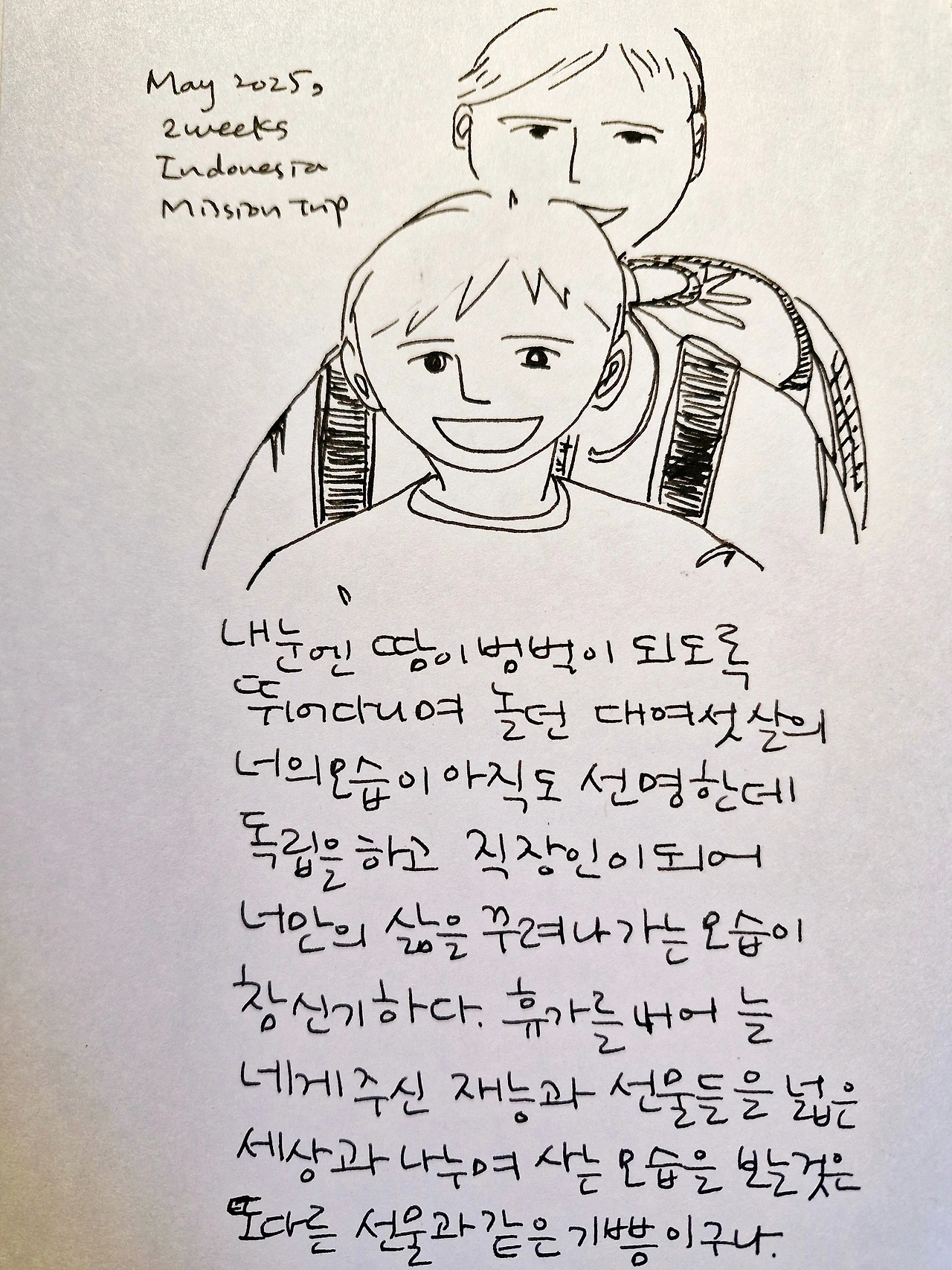 전화로 한참을 그곳에서 경험한 일들을 나누어 주는데 엄청 행복하고 보람된 시간이었음이 고스란히 전해졌다.