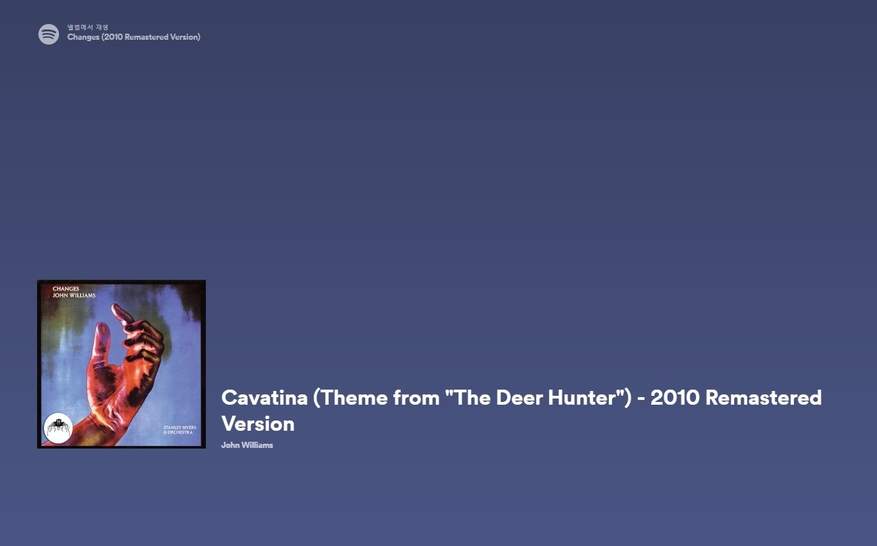 이 공연에서는 '독도의 사계' 메인 공연도 좋았지만 우리에게 러시안룰렛(Russian Roulette)으로 유명해진 마이클 치메노 감독의 영화 '디어헌터(The Deer Hunter, 1978년)'의 테마곡 'Cavatina'-스텐리 메이어스 작곡-의 오프닝 연주가 너무나도 좋았다.