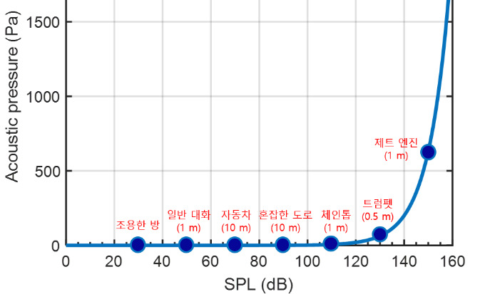 위 스피커의 SPL이 1m에서 측정했을 때 110dB 정도이니 상당한 정도의 음압을 제공한다. 음압이란 소리가 우리의 귀를 누르는 압력이라 간단히 말할 수 있다. 소리가 6 dB 줄었다는 것은 음압이 반으로 줄었다는 것이다.