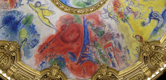 1964년 프랑스의 문화부 장관이었던 앙드레 말로는 그의 친구였던 샤갈에게 오페라 가르니에 천장화를 그려달라는 부탁을 한다. 당시 77세의 노화가(老畫家)는 다른 3명의 조수들과 함께 약 8개월간에 걸쳐 220제곱미터의 거대한 작품을 완성시켰다.