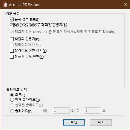 아래의 방식은 비교적 표준적인 표지 제작 과정이다. 앞면과 뒷면을 모두 완성했다면, 이제는 작업을 위해 남겨두었던 구분선들을 하나씩 지워 주어야 한다. 화면 위에서는 친절했던 선들이, 인쇄 단계에 이르면 오히려 방해가 되기도 한다. 대신 책등, 그러니까 세네카의 크기를 위아래로 조금 더 또렷하게 잡아 주면 앞뒤의 구분은 자연스럽게 드러난다. 보이지 않게 정리하는 일이 오히려 가장 중요한 단계라는 생각이 든다. 그리고 마지막 관문처럼 남아 있는 것이 파일 포맷이다. 인쇄소로 보낼 때는 왼쪽 그림처럼 PDF/A-1a 형식으로 변환해야 한다. 그래야 CMYK 인쇄가 안정적으로 이루어진다. 화면 속 선명한 RGB 색감은 종이 위에서 전혀 다른 얼굴을 내밀 수 있기 때문이다. 파일 하나를 바꾸는 일 같지만, 사실은 종이 위의 결과를 예측하는 일에 가깝다.