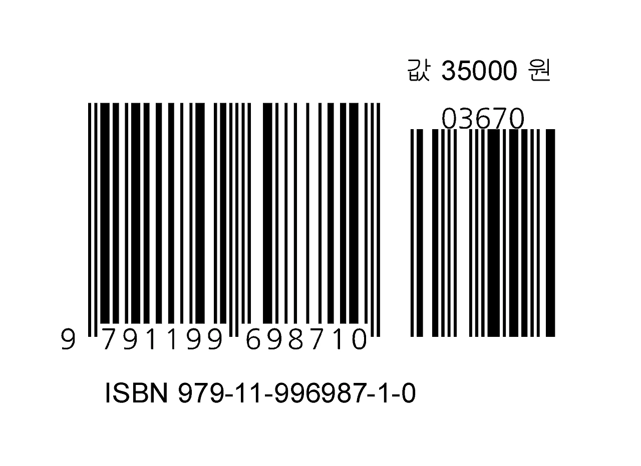 바코드의 크기도 함부로 다룰 수 없다. 규정상 20%까지는 축소가 가능하다고 하지만, 괜히 비율을 임의로 건드렸다가는 서점 계산대에서 스캐너가 머뭇거릴지도 모른다. 보이지 않는 선과 간격, 검은 막대의 굵기 하나까지도 이미 계산되어 있다는 사실을 떠올리면 괜히 겸손해진다. 그래서 나는 되도록 원본 그대로를 사용하기로 했다. 책의 마지막 얼굴이 될 작은 사각형 하나에도, 생각보다 많은 책임이 담겨 있으니까.