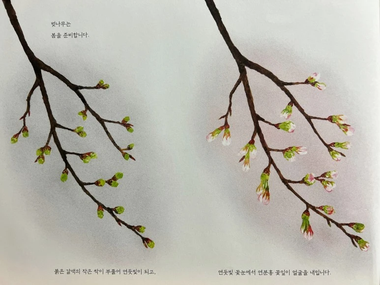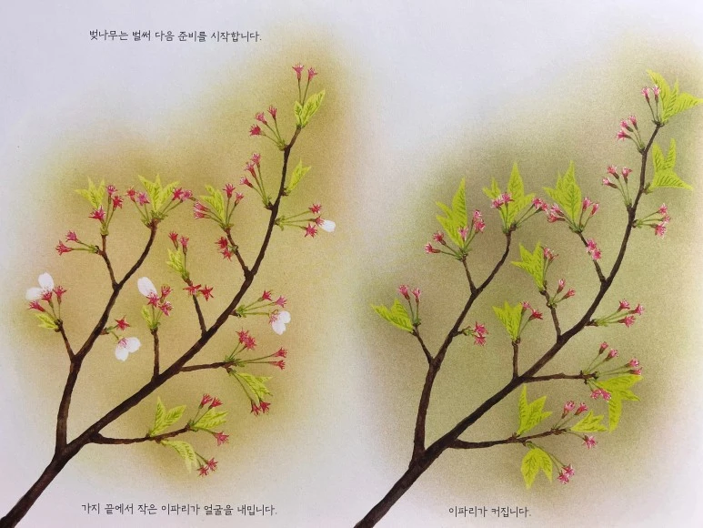 그나저나, 이렇게 아름다운 그림으로 아이들에게 꽃이 피는 과정과 새가 꿀을 빠는 모습을 보여줄 수 있다니! 자연에 관한 호기심이 퐁퐁 솟을 것 같아요.