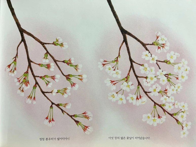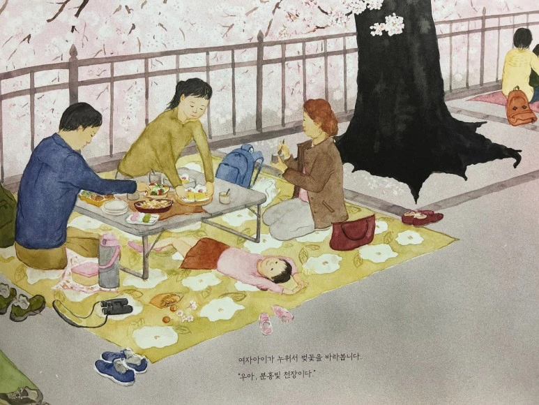 요즘 같은 날에 딱 어울리는 그림책 <벚꽃이 피면>을 소개합니다. 이 책은 아이들과 함께 읽어도, 어른 혼자 감상하기에도 좋아요. 책이 크~고 길~거든요. 세로 230mm, 가로 310mm라서 책을 펼치면 가로로 아주 길어지는데, 덕분에 황홀한 봄 풍경화를 만끽하기에 제격이랍니다.