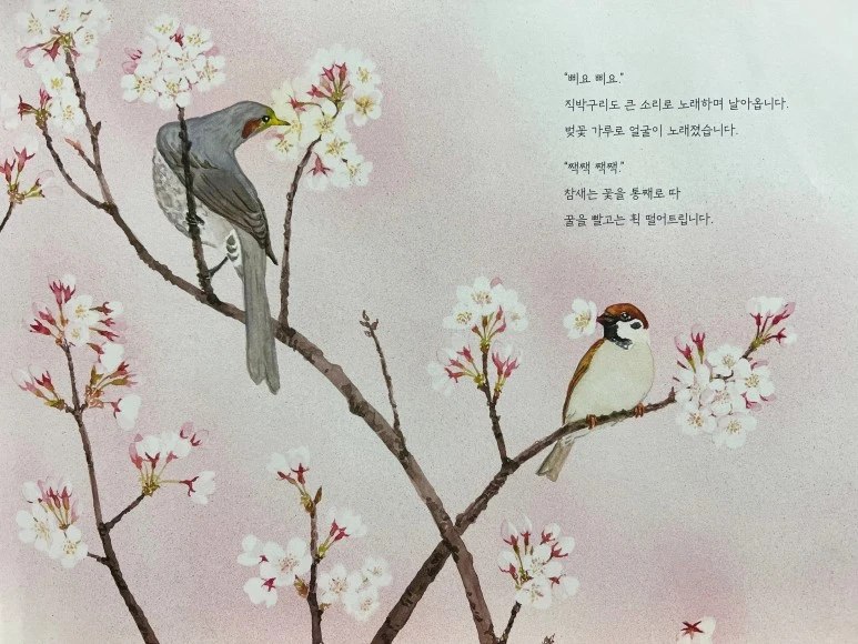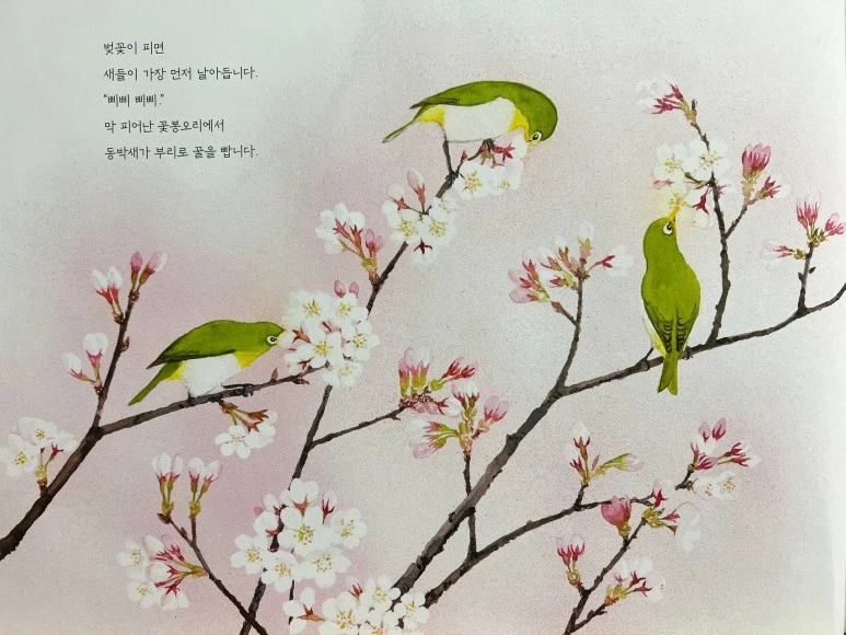 벚꽃이 피면 새들이 가장 먼저 날아듭니다.