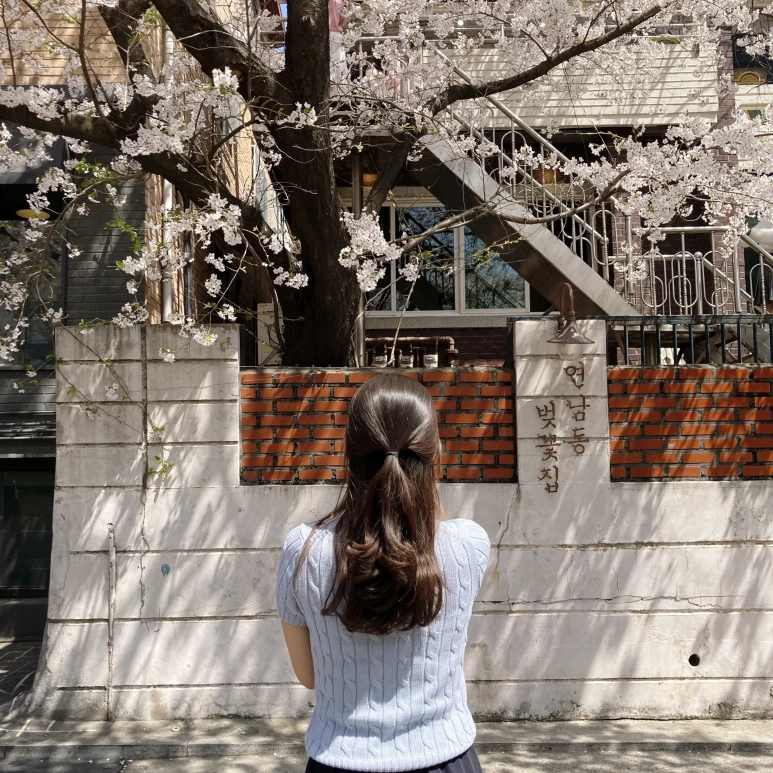 이대로 끝내기 아쉬우니 벚꽃 사진 명소를 추천합니다. 제가 매일 걷는 산책길에 있는 카페 '연남동 벚꽃집' 앞인데요. 카페 이름처럼 벚꽃 맛집입니다. 올해도 프사를 건져보겠습니다. 룰루~