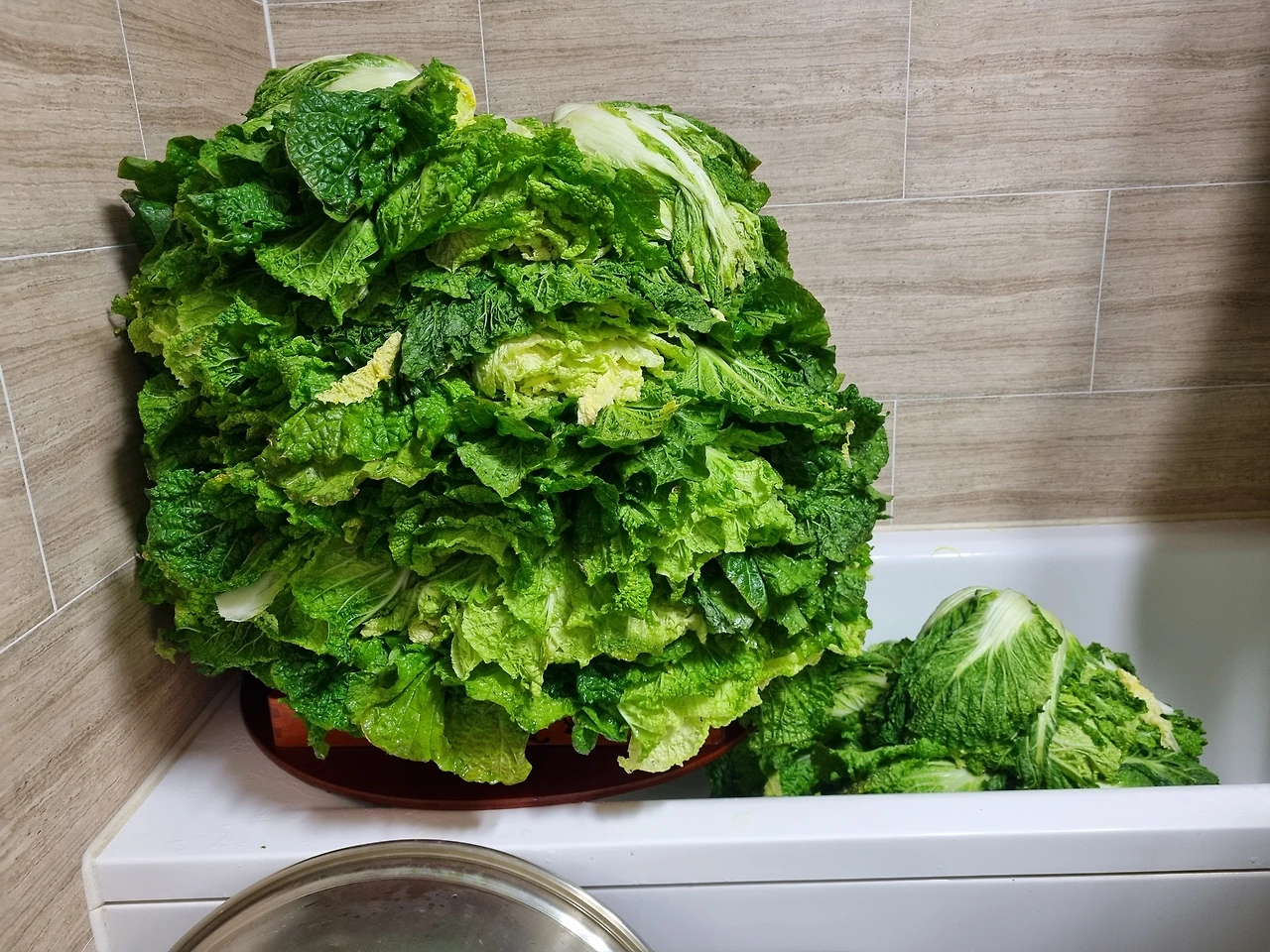 '아이고 형부배추농사는 왜 이렇게 잘되는 거예요' 매년 갈수록 줄지는 않고 더 늘어나는 건 내 느낌인가. 큰 형부는 소소하게(?) 배추와 상추 농작물 키우는 걸 좋아한다. 이날 큰 형부가 친정 화장실 청소를 하고 배추 씻고 절이기까지 했다.