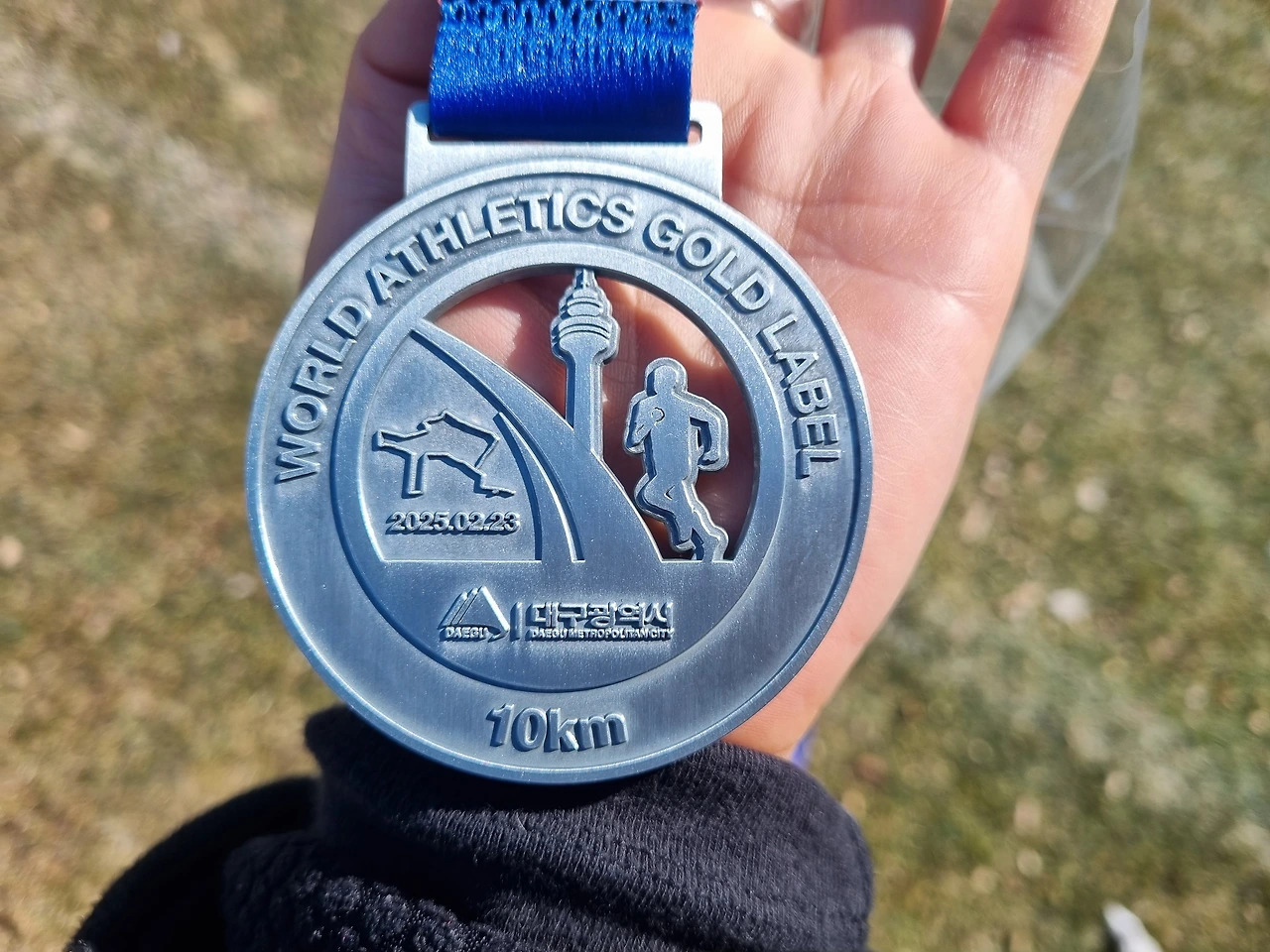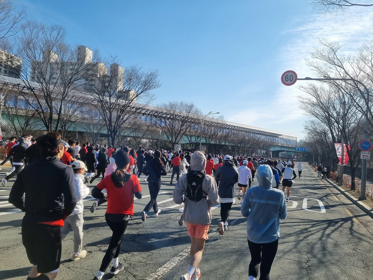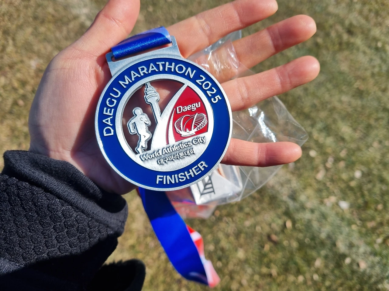 남편과 두 딸이 잠든 일요일 아침 일곱 시 나 홀로 집을 나섰다. 오늘은 [2025 대구마라톤] 대회가 있는 날이다. 아홉 시에 시작이지만 초행길이고 4만 명이 넘는 사상 최대의 인원이 모인다 하여 서둘러 지하철을 탔다. 타이즈에 반바지를 입고 긴 양말을 신은 사람. 스포츠가방에 검은 롱패딩을 입은 사람, 내 눈에는 다 달리기 참가자로 보인다. 정해진 역에 내리는데 갑자기 사람들이 뛰기 시작한다. 덩달아 급해져 같이 달렸다. 마라톤장소까지 운행해 주는 셔틀버스를 타기 위해서다. 줄이 장관이다.