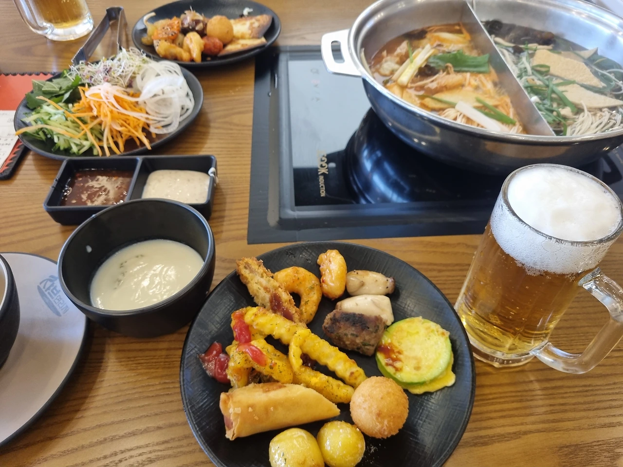 도서 대출하니 열시다. 근처 가려고 했던 식당은 한 시간 뒤에 문을 열어서 집으로 가는 길에 찾아보자고 했다. 걷다가 정한 곳은 샤브뷔페. 이 주 전부터 남편이 가자고 한 곳이다. 아까 뛰었던 공원 근처다. 식당에 도착하니 이미 이만보가 찍혔다. 배가 고파 눈에 보이는 대로 담았다. 생맥주를 쉴 틈 없이 들이켰다. 짜릿하다. 잊을 수없는 두 번째 맛이다.(22개월 만에 다시 술을 마시게 된 첫 번째 맛이 따로 있다)