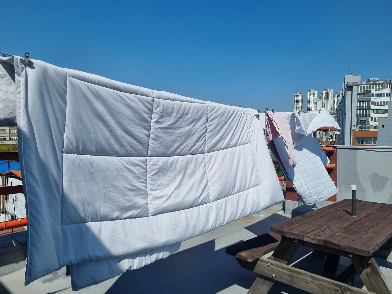 날도 좋아졌으니 가끔 옥상에 빨래 널러 올라와야겠다. 빨래를 하고 깨끗해지고 이불은 따뜻하다. 바깥에서 무슨 일이 있어도 집에서는 편히 쉴 수 있기를. 집에 오면 폭 껴안을 수 있는 이불속으로 엄마 품으로 들어오면 고마울 것 같다. 이제는 엄마 품이라고 적는 것도 낯설다. 큰아이는 잘 안기지도 않으니까.