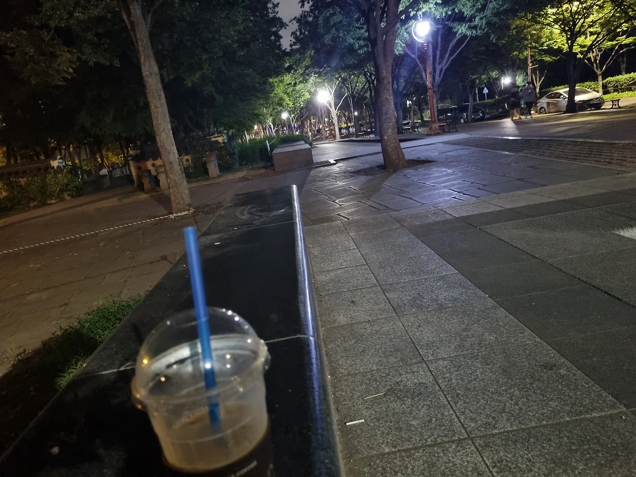 어느 순간 눈치를 보기 시작했다. 누구의 눈치인지도 모르겠다. 아니다. 빤하다. 누구긴 나처럼 커피 좋아하는 남편 혼자 두고 나와서 많이 찔렸는가 보다. 혼자 나와 만끽하는 조용한 밤거리에 왜 움찔한 생각이 들었는지 운동하려고 나왔다가 농땡이치고 싶은 마음이 들켜버린 걸까?