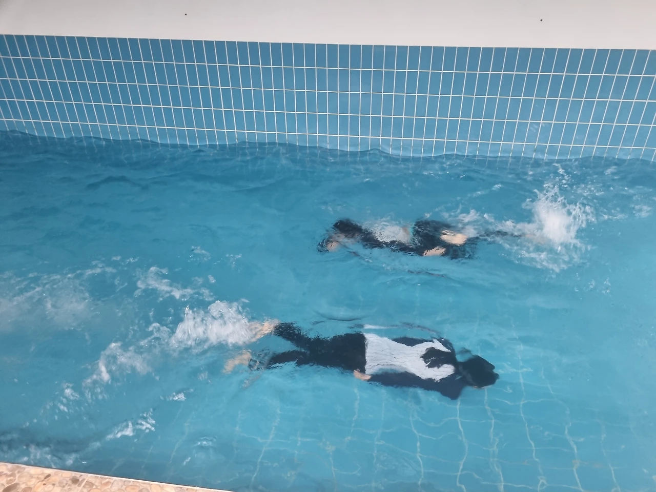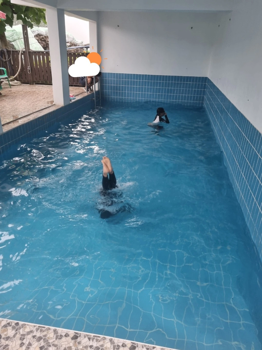 늦게 도착한 만큼 얼른 준비하여 물놀이를 시작한다. 생각보다 차가운 물온도에 다른 방에 묵는 가족들은 일찍이 정리 한 모양이다. 그렇게세 군데의 펜션에서 사용하는 수영장은 우리 아이들 전용이 되었다.덜덜 떨 때까지 수영을 하고 이내 스파로 몸을 녹였다.