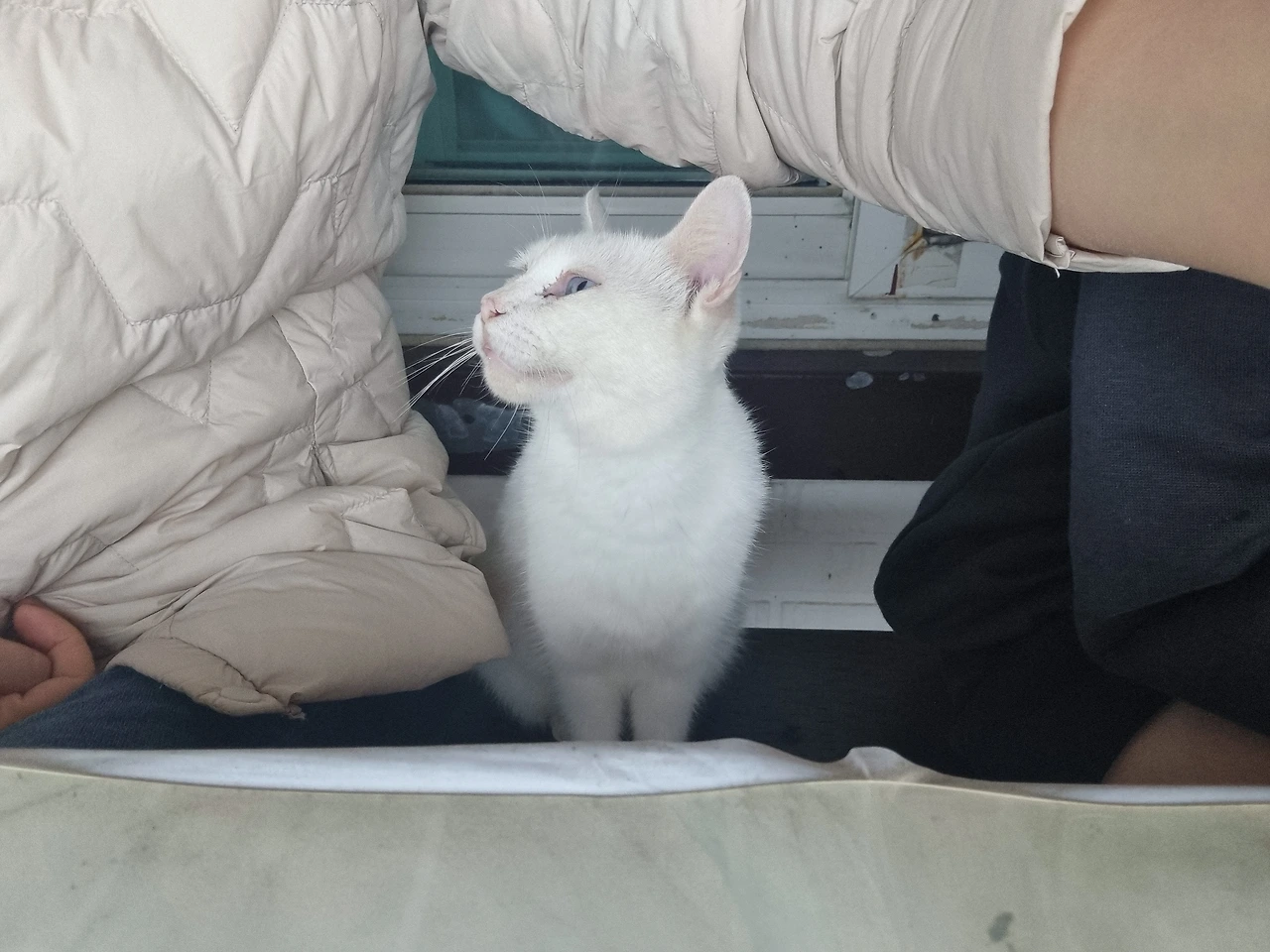 아침식사 중 딸과 나 사이로 소리소문 없이 언제부터 자리 잡고 있었는지 평생 한 번도 키워본 적 없는 고양이집사의 느낌도 잠시 가져본다. 세수 좀 하고 오라 해도 꿈쩍도 안 하는 흰냥이. 우리가 먹는 음식 한번 먹어보겠다는 일념으로 근처 주위를 어슬렁거리는 냥이들이 한마음 한뜻으로 곁을 머문다. 알지 아는데 단짠의 맛을 아는 냥이들에게 사람들이 먹는 음식을 무턱대고 줄 수는 없었다. 그리곤 다행인지 불행인지 옆 방 테이블에서 vip고객인양 식사량을 채우는 듯했다.